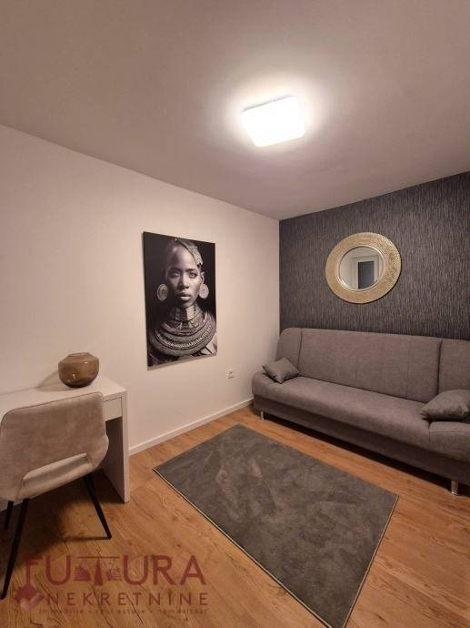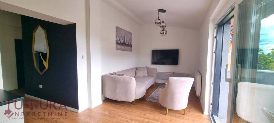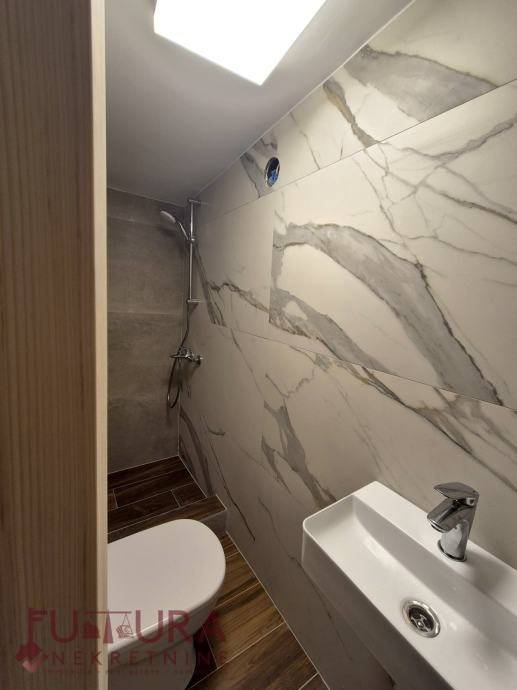 Kat: prostran dnevni boravak s kuhinjom i blagovaonicom u otvorenom konceptu, glavna spavaća soba, dodatna spavaća soba i moderna kupaonica s tušem i WC-om.