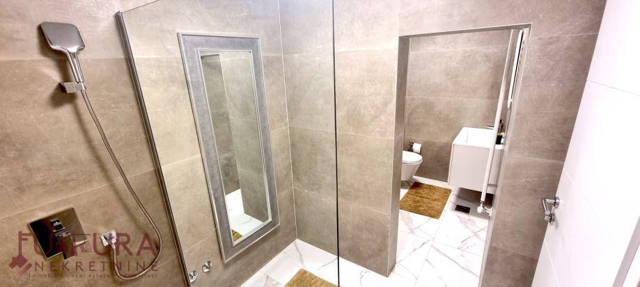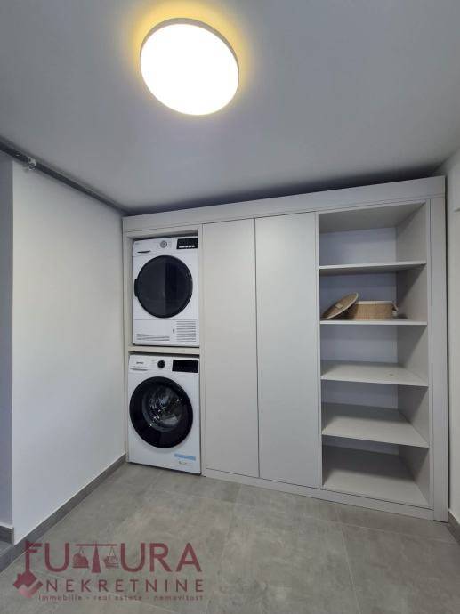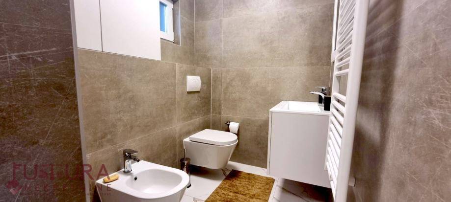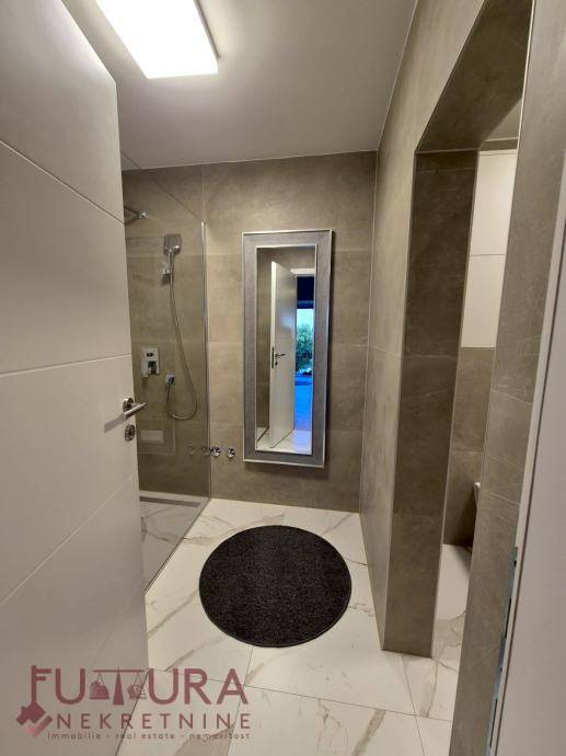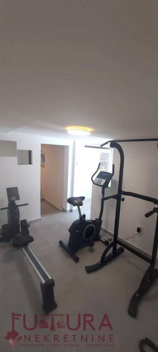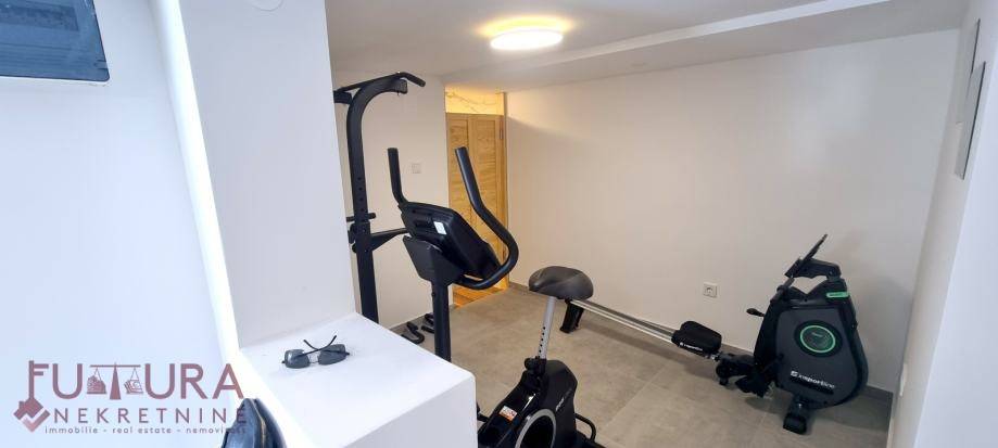 Prizemlje: wellness zona s privatnom saunom i teretanom, kupaonica s tušem i WC-om, vešeraj/tehnička prostorija te dodatni WC.