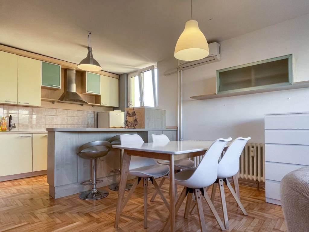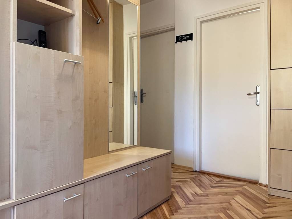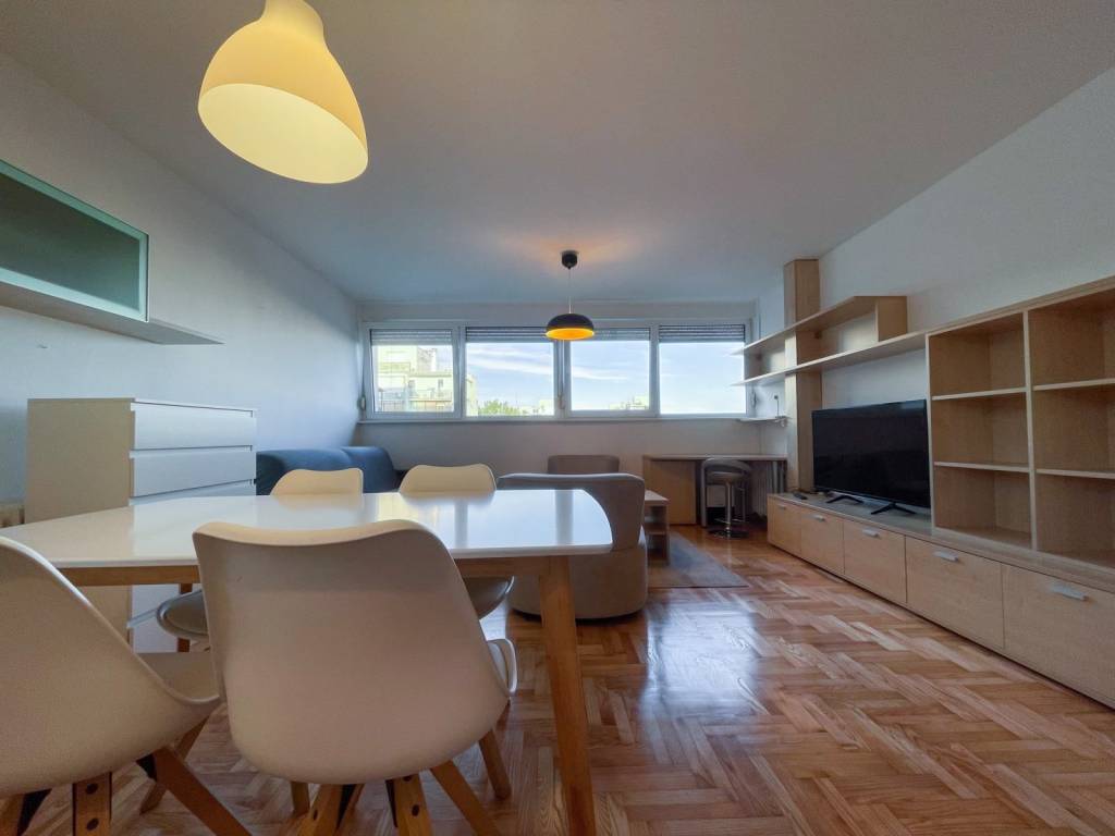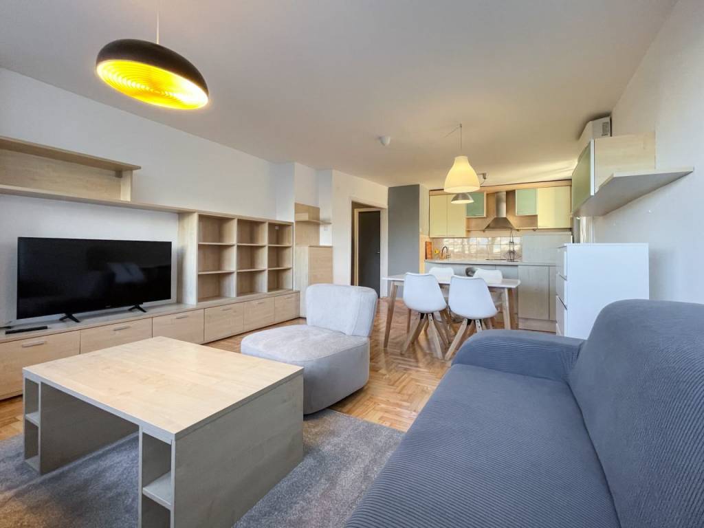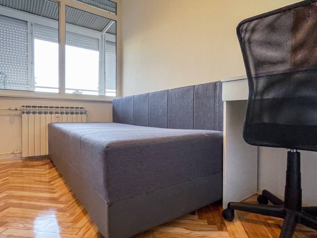 Namještaj u stanu je dobro očuvan. U stanu je ugrađena PVC stolarija, novo lakirani parket, protuprovalna vrata. Kuhinja je opremljena novom pećnicom na struju i indukcijskom pločom.