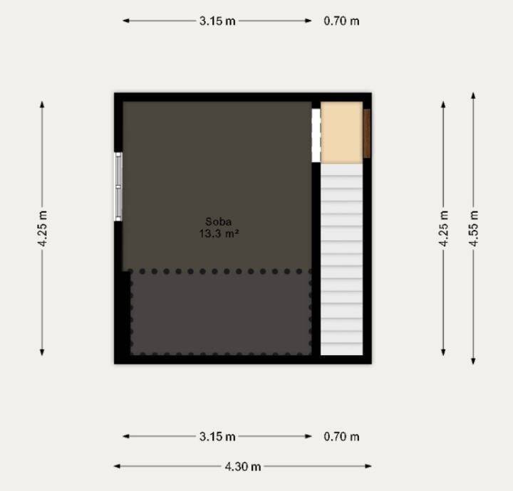 Sastoji se od ulaznog prostora, kupaonice, kuhinje i blagavaone, dnevne sobe, balkona, stubišta koje vodi na drugu etažu gdje se nalazi spavaća soba i spremišta(koje se može prilagoditi svojim potrebama kao npr. Walk-in ormar). Postoji mogućnost odvajanja kuhinje i blagovaone od dnevnog boravka uz manju investiciju (ugradnje vrata), u tom slučaju bi se dobila zasebna soba. Tlocrti se nalaze u privitku.