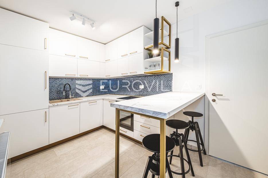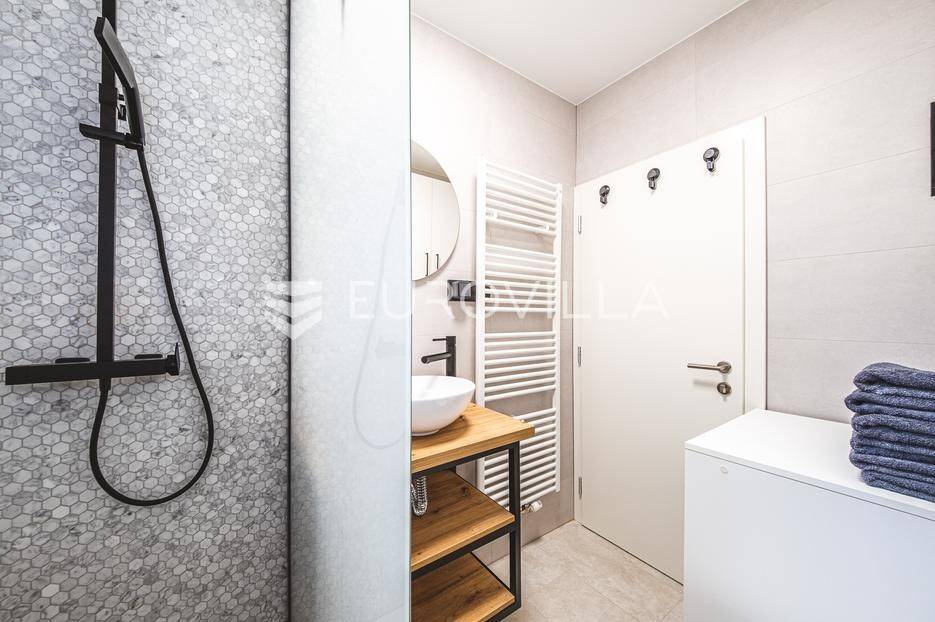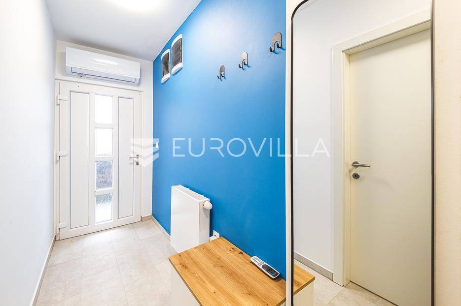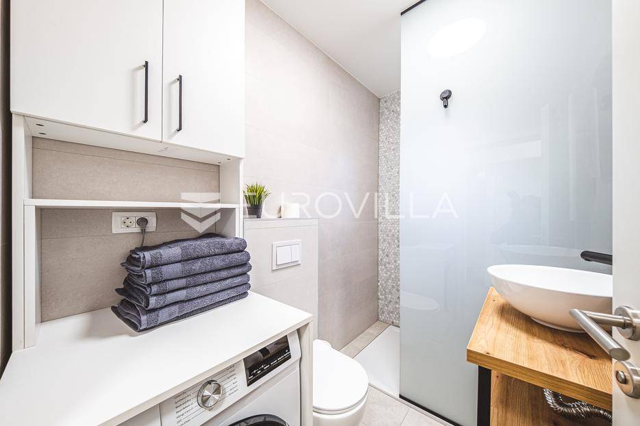 Potpuno namješten i opremljen novim aparatima (perilica-sušilica, perilica suđa, pećnica, frižider, klima, dizalica topline). Promijenjene sve instalacije, podovi, zidovi, grijanje i hlađenje.