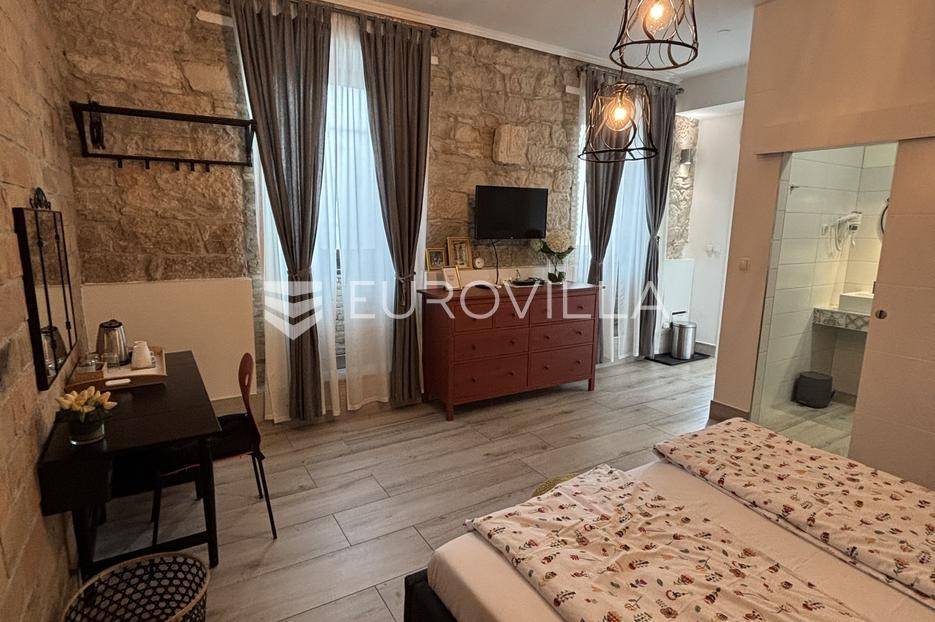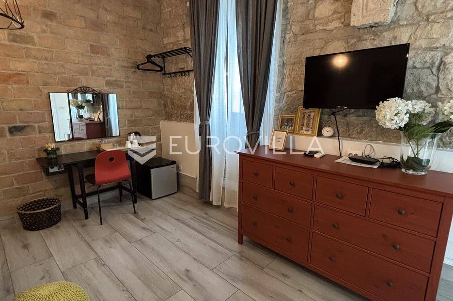 U strogom centru Pule smjestio se moderno uređen stan ukupne stambene površine od 58,68 m2 koji je smješten u prizemlju poslovno-stambene zgrade.Stan se sastoji od dvije spavaće sobe, dva kupatila, zajedničkog prostora koji se može koristiti kao kuhinja odnosno dnevni boravak po open space konceptu.Grijanje i hlađenje osiguravaju dvije kvalitetne klime koje su postavljene u spavaćim sobama, podne obloge izrađene su od kvalitetnog laminata.Nekretnina je uređena i opremljena za turističko iznajmljivanje, što budućem vlasniku omogućuje nastavak već uhodanog posla ili jednostavnu prenamjenu u udoban gradski dom.Izuzetna prilika za investiciju ili miran i ugodan obiteljski život.Za više informacija slobodno nas kontaktirajte.