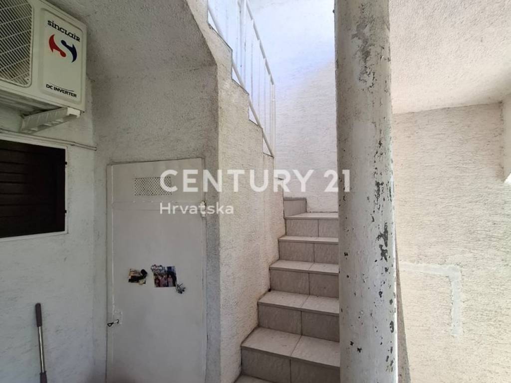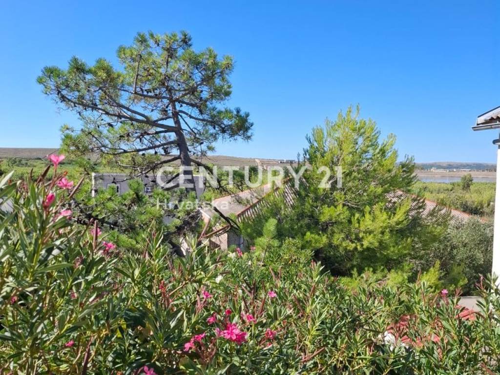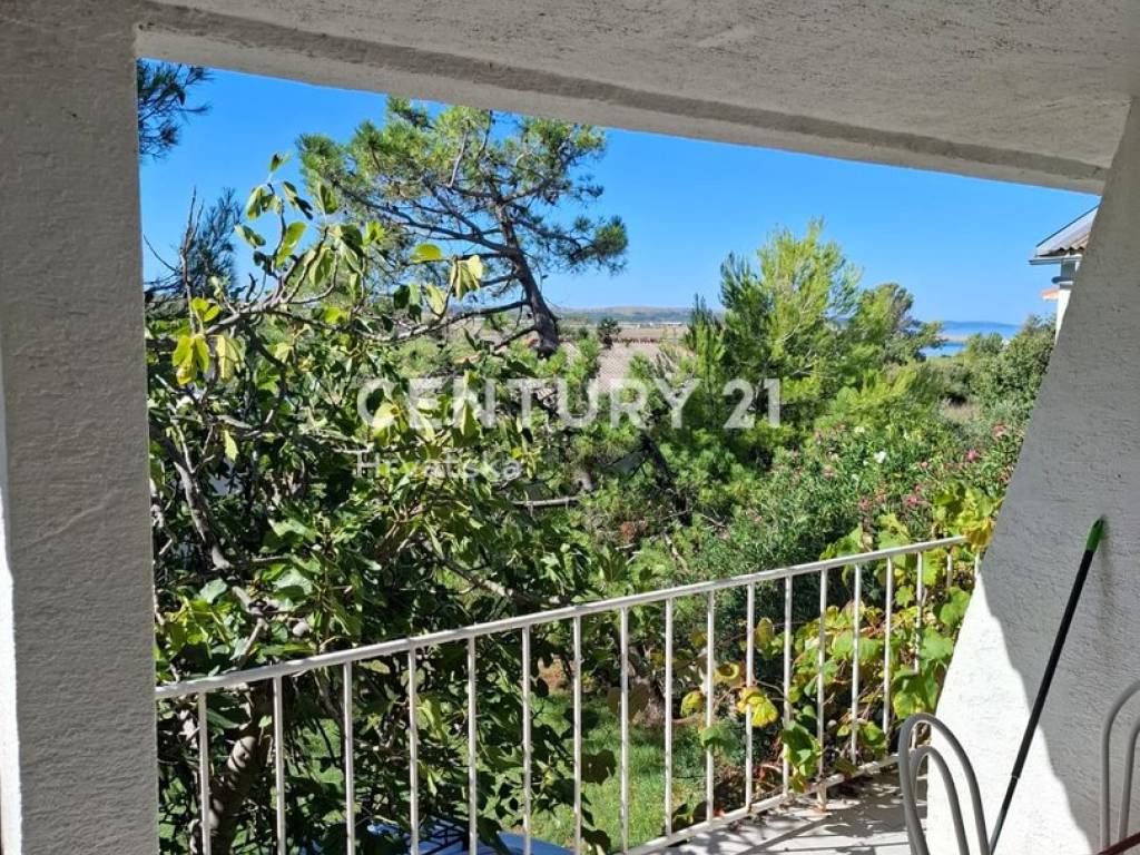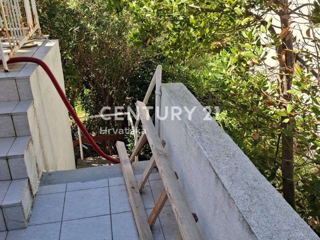Kuća je građena kao katnica - prizemlje + kat, na prostranoj parceli punoj zelenila. Smještaj ove nekretnine ima više prednosti, mirnu lokaciju, blizinu plaže koja je udaljena svega 350 metara a jako bitno, sastoji se od 3 odvojene stambene jedinice. Veliki stan je smješten u prizemlju, tu su 3 spavaće sobe, boravak, kuhinja s blagovanom te kupaonica. Na katu su smještena dva odvojena stana, svaki sa dvije spavaće sobe, dnevnim boravkom, kuhinjom i kupaonicom. Svi stanovi imaju velike prostrane terase, a sa onih na katu je pogled na more. Osim toga, bočno uz kuću je velika garaža, koju su vlasnici ponekad zbog iznajmlivanja stanova turistima koristili i za stanovanje.