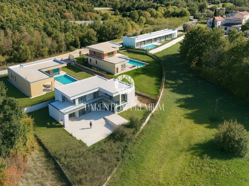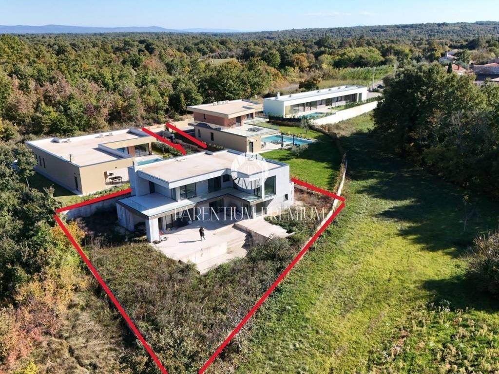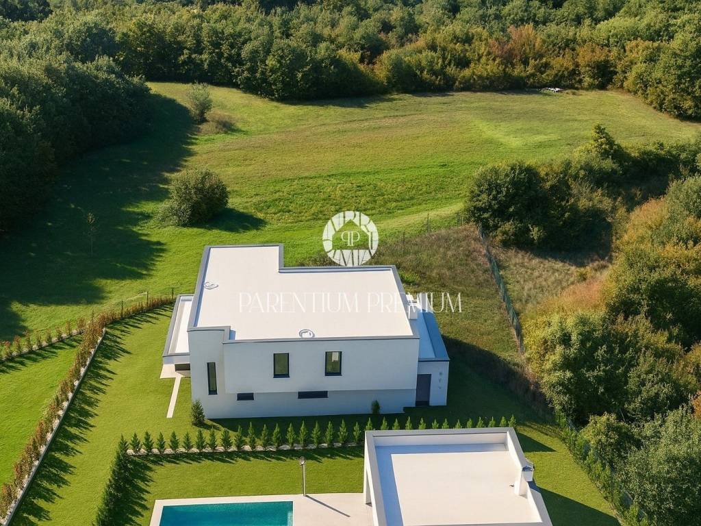 Modern villa with infinity pool and 4 bedrooms – last unique opportunity on the marketLocated on the edge of a peaceful village near the historic town of Svetvinčenat, this elegant modern villa with an infinity pool offers complete privacy and comfort. Currently in the final stage of construction, it represents a rare chance – the last true villa of this type available on the market.Key features:Land plot: 1,040 m²Gross living area: 330 m² netto 525 m2 ,pool 50 m2Infinity pool with heating preparation4 bedrooms, each with en-suite bathroomUnderfloor heating + air conditioning in every roomFull privacy in a quiet settingLayout:Ground floor: entrance hall with wardrobe, guest toilet, storage rooms, spacious open-plan living room with kitchen and dining area, bedroom with en-suite bathroom, access to the pool terrace with a covered outdoor kitchenFirst floor: 3 spacious bedrooms with en-suite bathrooms, large covered terrace with open views and installations for jacuzziExterior:Infinity pool with ceramic finishing and heating preparationSun deck and landscaped garden with automatic irrigationParking for 3 carsFully fenced yard with automatic gateLocation & privacy – main advantages:Situated on the edge of the villageAgricultural land in front ensures there will be no future constructionComplete privacy on all sides – no neighbors in front, left, or rightAdditional highlights:High-quality modern constructionPeaceful natural surroundings, just a few minutes from all amenitiesExclusive opportunity – last villa of this kind available in the area