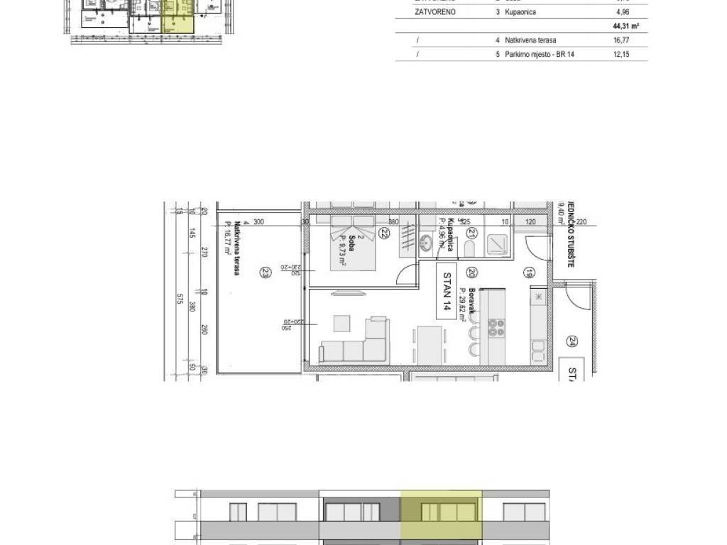 Pag - Povljana, se vende apartamento de un dormitorio de 44,31 m2 en el segundo piso de un edificio residencial con un total de quince apartamentos en construcción, con mudanza prevista para el verano de 2026.