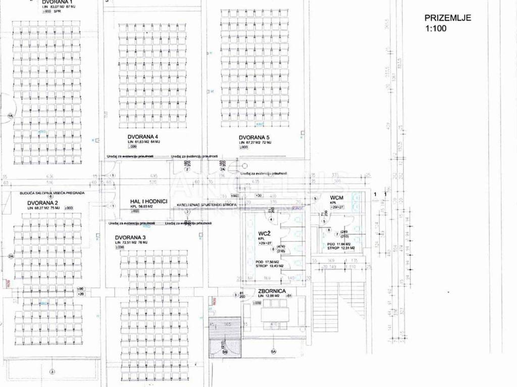 OPIS: Prostor površine 450m2 idealno je smješten u prizemlju poslovne zgrade i rasporedom prostorija posebno je pogodan za odgojno-obrazovne institucije, tvrtke koje nude edukacijske programe, te kao co-working prostor, ured, izložbeni prostor i sl. Sastoji se od velikog ulaznog hodnika, pet velikih prostorija (predavaonica), odvojenog muškog i ženskog sanitarnog čvora te još jedne manje prostorije. Uz prostor dolaze dva garažna parkirna mjesta.