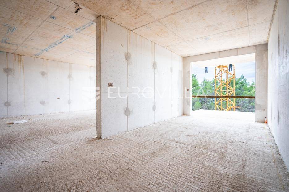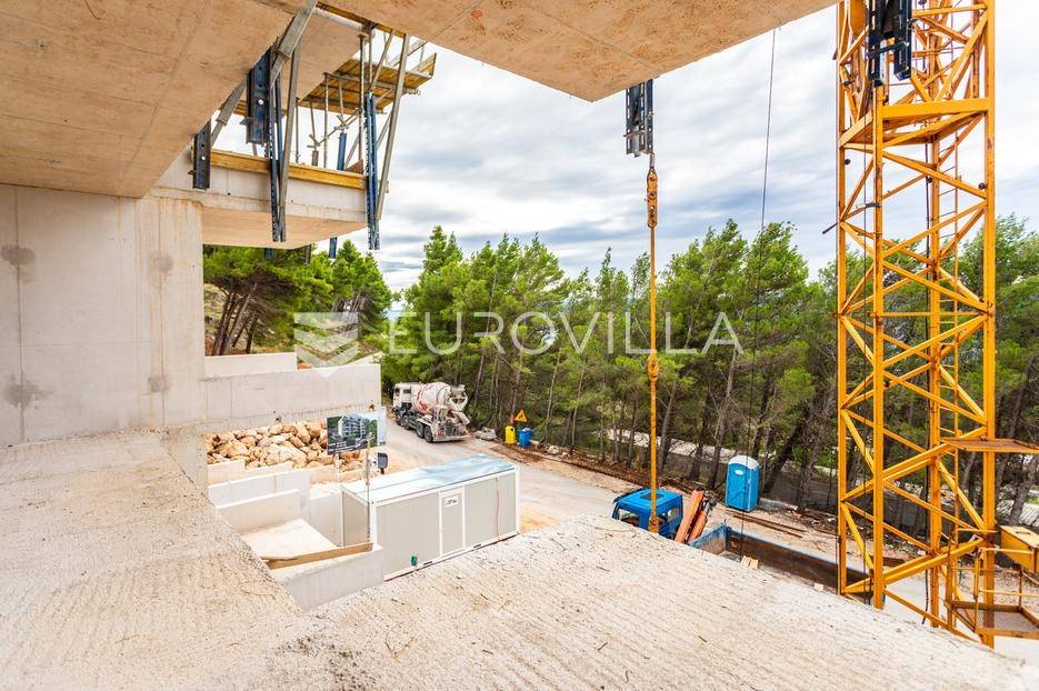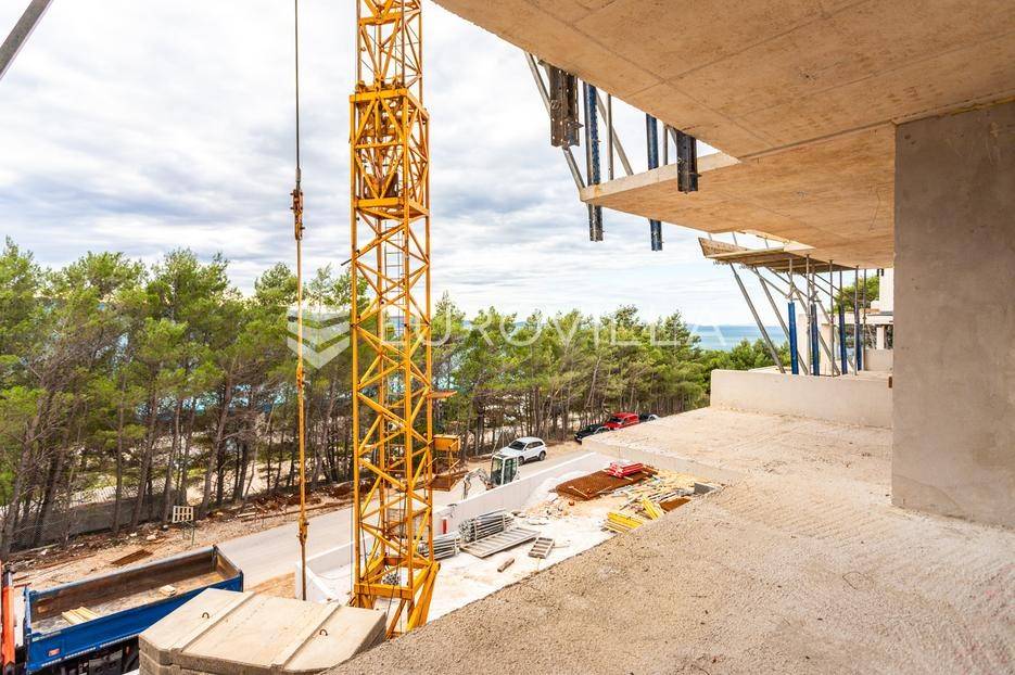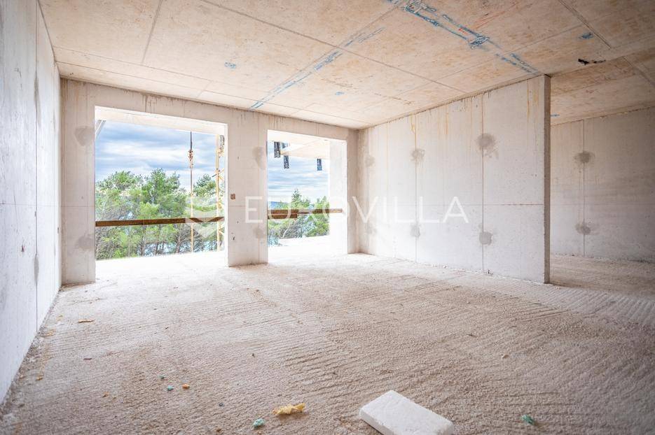 Omiš, moderan stambeno-poslovna zgrada s ukupno dvanaest stambenih jedinica- predivan i otvoren pogled na more.STAN 5- dvosoban stan drugom katu zatvorene površine 57, 75 m2, s prostranom natkrivenom terasom površine 21, 20 m2.Stan se sastoji se od ulaznog hodnika, dvije spavaće sobe, kupaonice, WC-a, kuhinje s blagovaonicom, te dnevnog boravka s izlazom na terasu .Uz stan moguća je kupnja privatne garaže površine 16, 56 m2 po cijeni od 22 000, 00 EUR-a, te vanjskog parkrinog mjesta površine 12, 50 m2 po cijeni od 17 000, 00 EUR-a.Useljenje je predviđeno krajem 2026. godine.Oprema: podno grijanje u kupaonicama, klimatizirana svaka prostorija, ALU stolarija, protuprovalna ulazna vrata, vrhunski parket, keramika i sanitarna oprema...Lokacija - na dvije minute vožnje od centra Omiša, okružena zelenilom i s predivnim pogledom na more. Najbliža plaža je udaljena 200 metara zračne linije.Za sve ostale informacije stojimo Vam na raspolaganju.