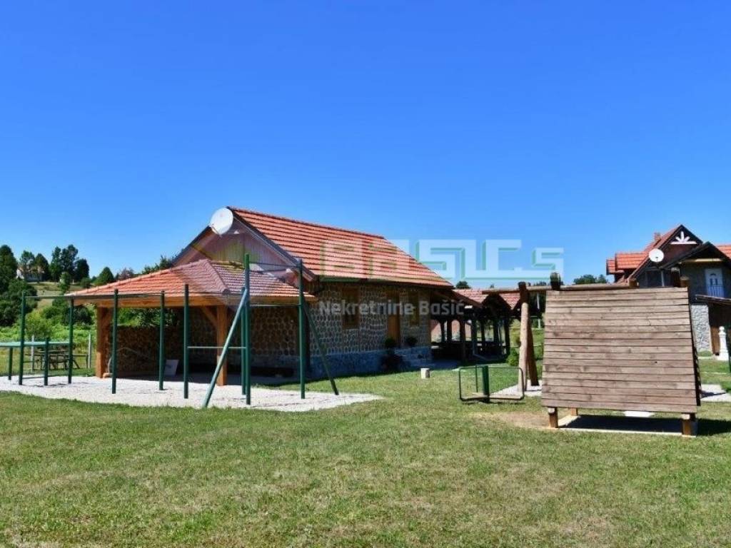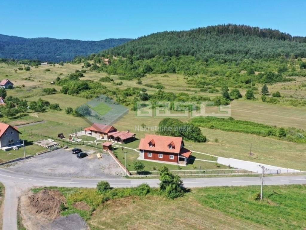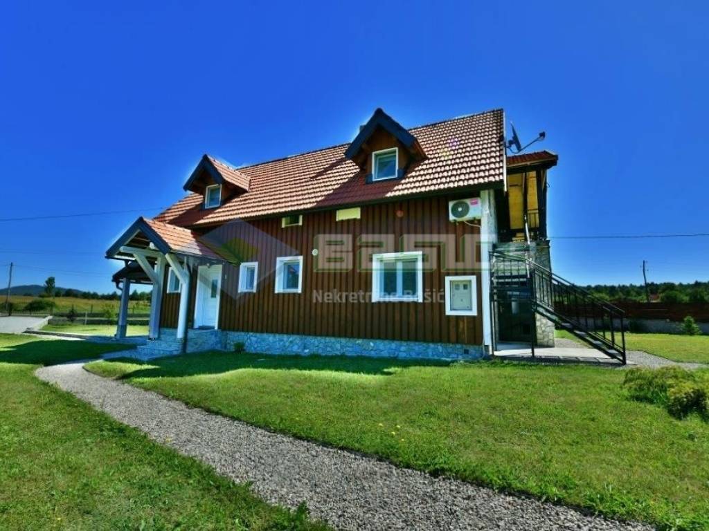 LIKA SABORSKO! U ovom lijepom planinskom mjestu smještenom na 700 m nadmorske visine između Ogulina i Plitvičkih jezera imamo u ponudi za prodaju imanje od 2290 m2 na kojem se nalazi objekt za cjelogodišnje iznajmljivanje sa uhodanim poslom i zanimljivim konceptom.