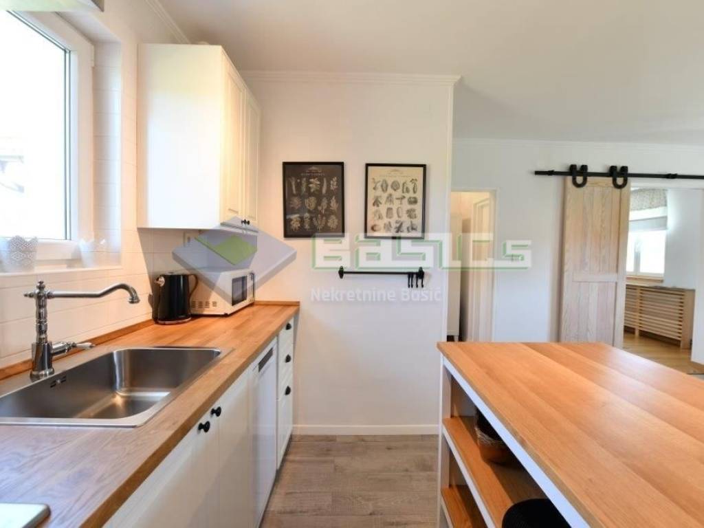 Grijanje i topla voda (sa spremnikom od 300 litara) riješena su grijanjem na pelete.
