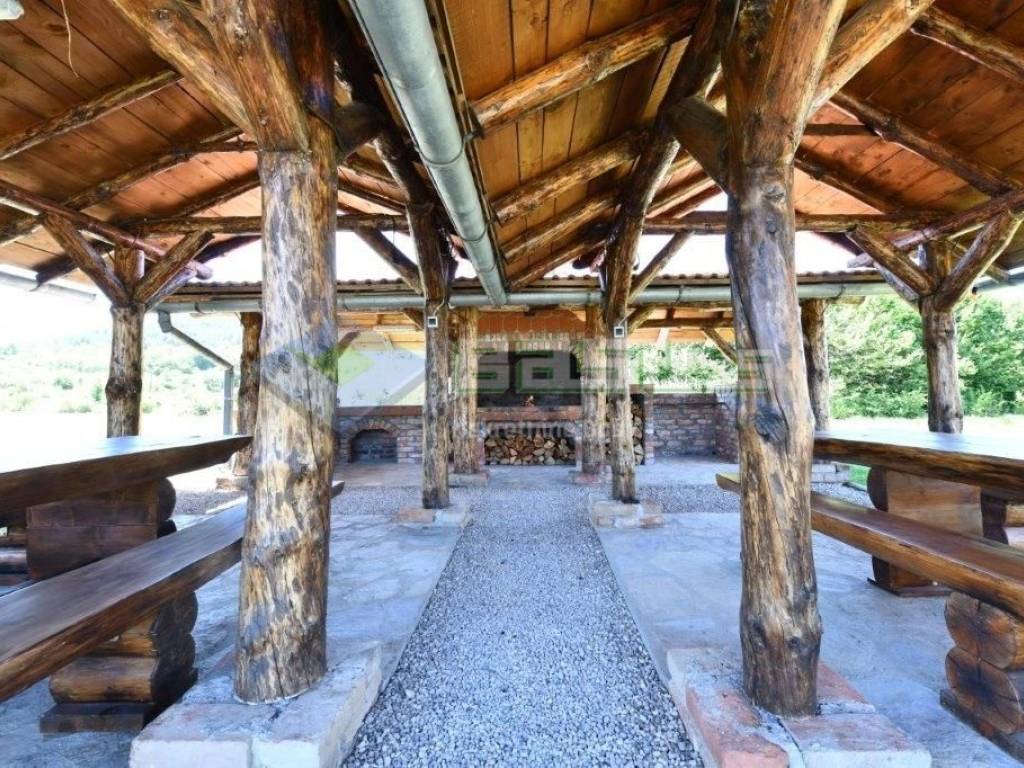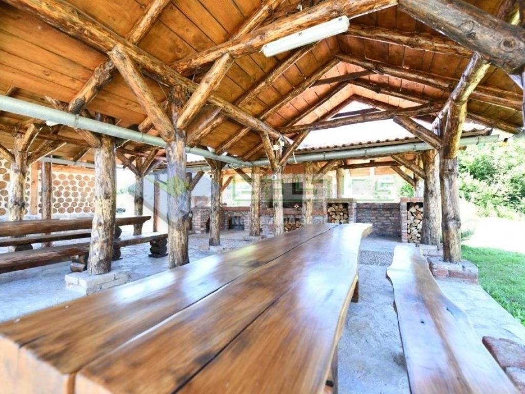 Između dvaju objekata smješten je veliki natkriveni prostor za druženje na otvorenom sa zidanim roštiljem, vodom, nekoliko velikih i dugačkih stolova i klupa, idealno za veća druženja. U blizini je i mali dječji parkić sa toboganom i spravama za dječje aktivnosti. Zbog veličine parcele moguće je igranje badmintona, odbojke ili jednostavno odmaranje na svježem zraku. Također, ima dovoljno prostora ukoliko bi netko želio graditi bazen.