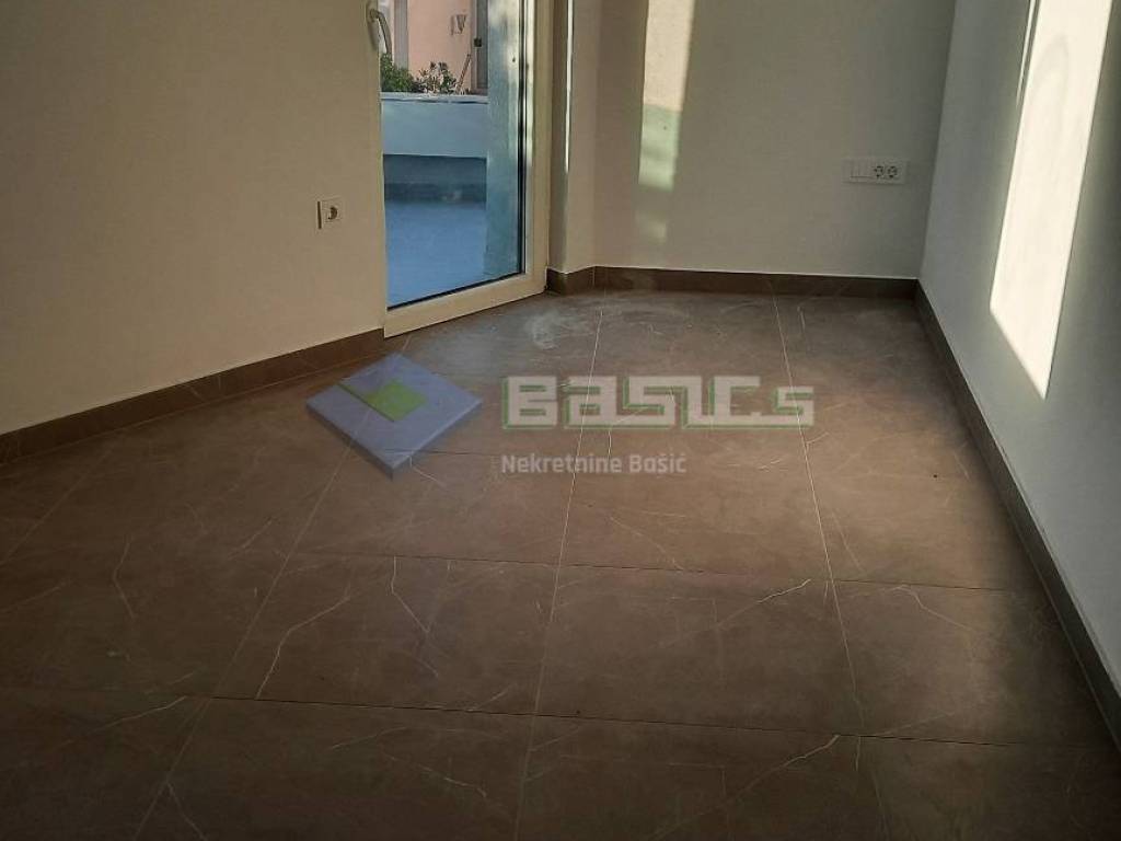 Iz stana se izlazi na veliku i lijepu terasu sa pogledom na more, a svojom površinom terasa je dovoljna da bude i produženi dnevni boravak i blagovaona. Stan je opremljen klimom koja ugodno hladi za vrijeme ljetnih vrućina, a može i u zimskim mjesecima omogućiti boravak jer se putem klime može i grijati prostor.