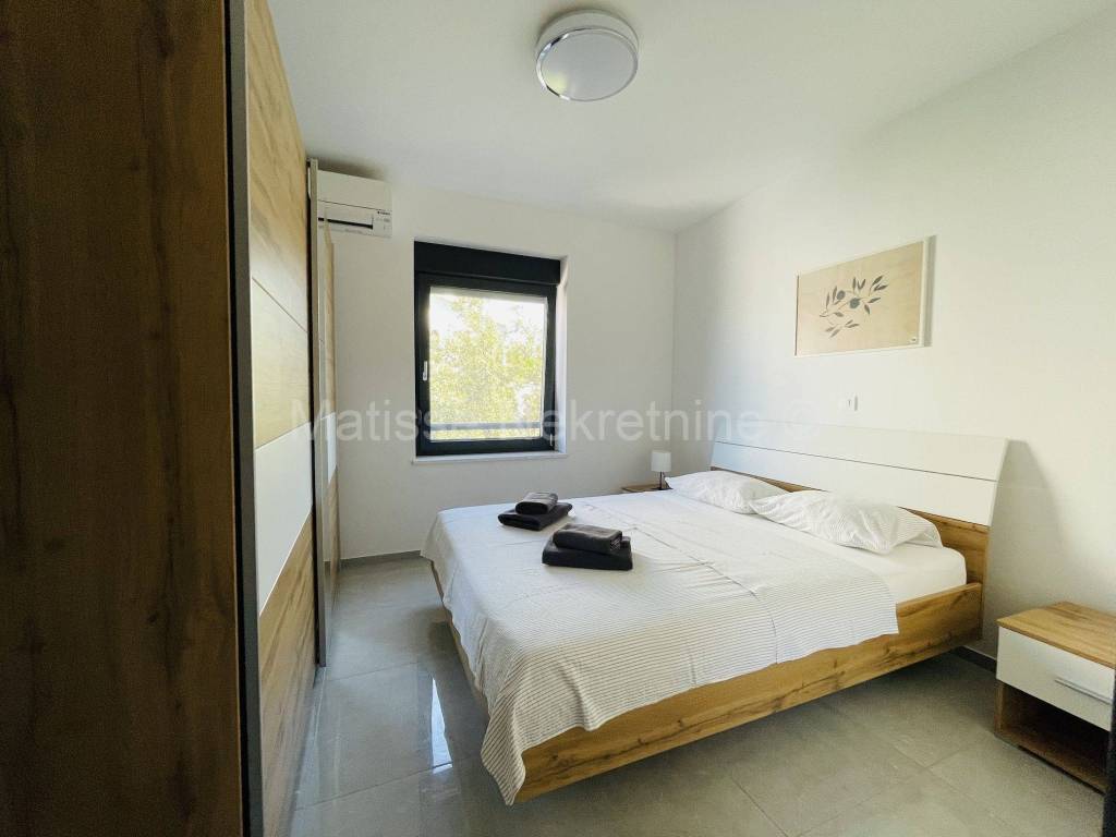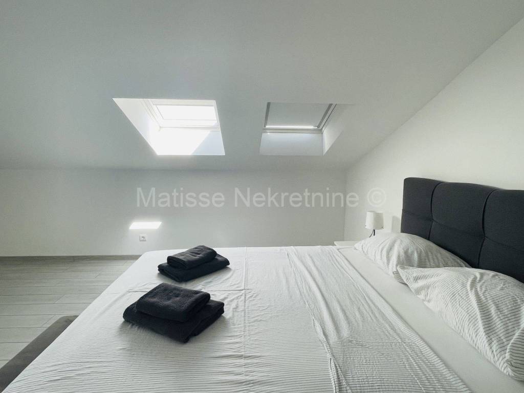 This luxurious apartment is located in a new, high-quality building in a small settlement near Pula. The building is situated in the first row to the sea and is only a few minutes' walk from the beach.