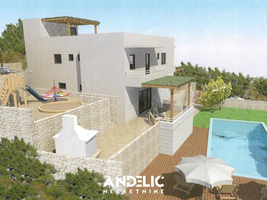 It consists of one residential unit, the ground floor consists of two garages and a large open space with a southwest orientation. The ground floor is not furnished, and it is possible to convert it into an apartment with a balcony and a terrace.