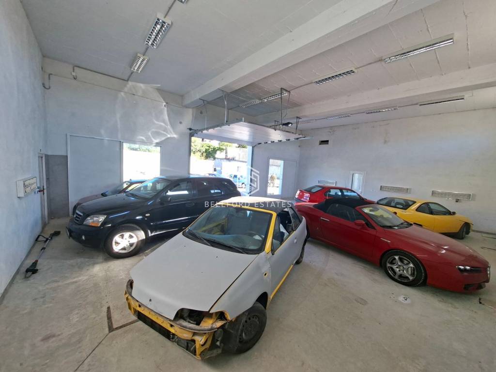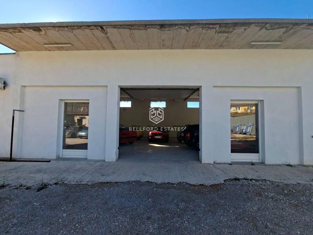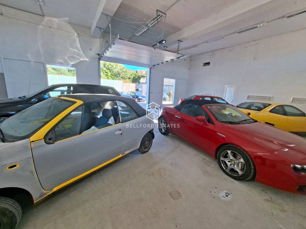 Opremljena s velikim električnim garažnim vratima.