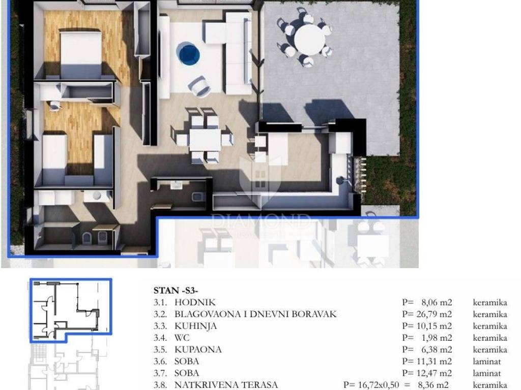 A modern apartment for sale in a newly built urban villa in Labin, located in a quiet residential neighbourhood, just a few minutes’ walk from the Labin city centre and all essential amenities. This new-build property is ideal for those seeking a peaceful environment close to the historic old town and the Rabac coastline.