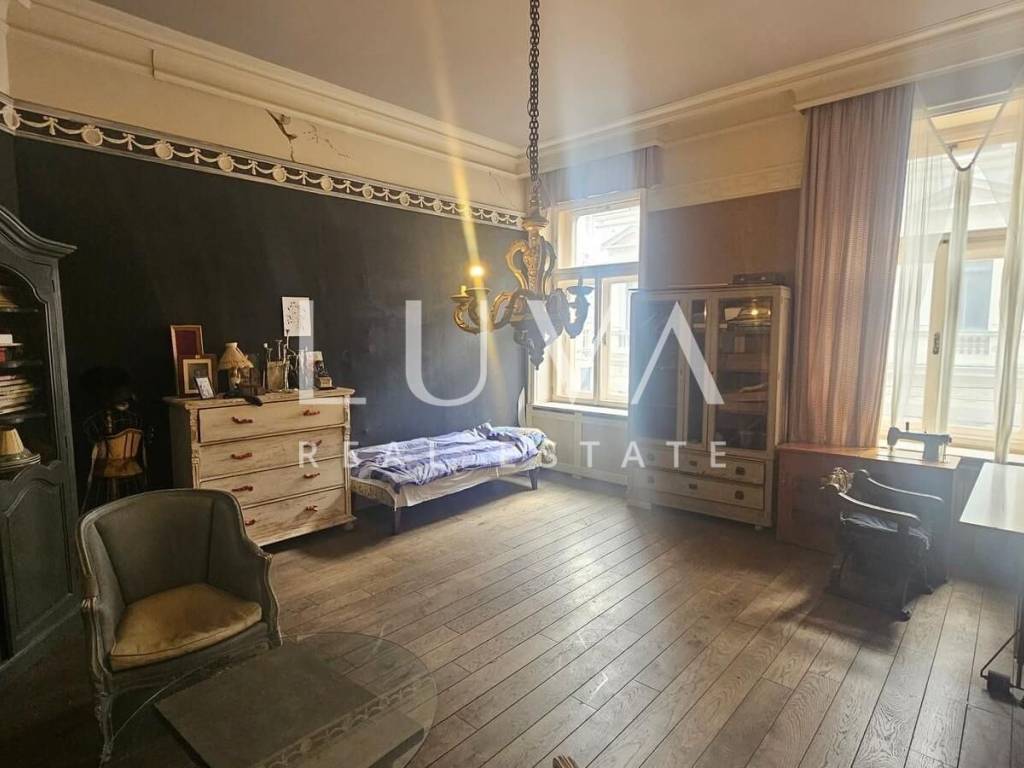 A 175m² apartment is for sale in the very center of Zagreb, on Petrinjska Street, just a few steps from Ban Josip Jelačić Square. The apartment is located on the 1st floor of a charming building with a beautifully maintained and spacious staircase. This is a typical large old-style apartment with spacious connecting rooms and ceilings as high as 380 cm. It consists of a long hallway, four large rooms, one smaller room, a storage room, a larger bathroom, a smaller bathroom, and a kitchen that opens onto a balcony. The apartment also includes attic storage and a basement storage room. This apartment, ready for renovation, offers great potential for a dream home in the heart of Zagreb or for office space suitable for quiet activities such as a law office, clinic, or similar.