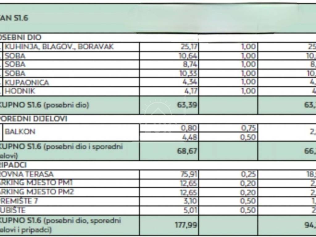 Apartment S6 on the 2nd floor (building A) WITH ROOF TERRACE, three-bedroom, contains: hallway, living room with kitchen and dining room (floor area 25.17 m2), three bedrooms (floor area 10.33 m2, 10.64 m2 and 8.74 m2), bathroom ( floor area 4.34 m2) and a covered balcony (floor area 5.28 m2) with a beautiful view of the city, the Zadar archipelago and the sea. The apartment with a balcony has a pv. 66.23 m2. Orientation is SOUTH-SOUTHWEST.