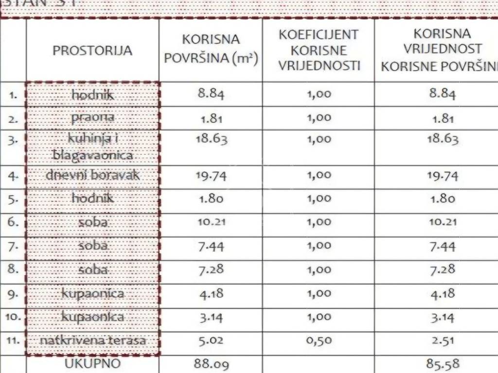 Ukupna površina stana sa svim pripatcima iznosi: 117.95 m2.