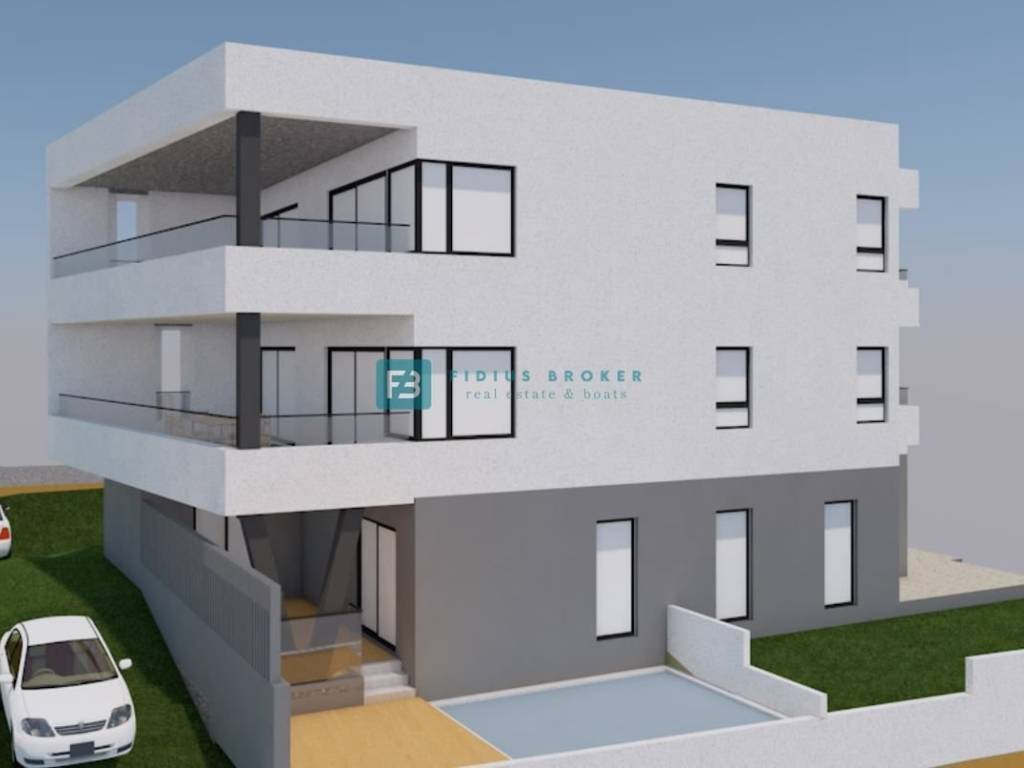 A new small residential building with a total of 4 apartments. The modern-looking residential building will consist of three floors: ground floor + 1st floor + 2nd floor. The ground floor is occupied by two apartments, and the 1st and 2nd floors are each occupied by one apartment for the entire floor of the building. The building is built with quality materials according to the latest construction standards: polystyrene facade, fire and burglar-proof entrance doors, aluminum joinery with triple-layer glass, aluminum sliding balcony doors, electric roller shutters with mosquito nets, floors covered with natural Plano stone, modern bathroom fixtures, air conditioning in the bedrooms and living room, TV connection in the bedrooms and living room, underfloor heating via heat pump, glass railings on the terraces. The building has an elevator. Apartments S1 and S2 each have one parking space within the building's courtyard, while apartments S3 and S4 each have two parking spaces. The planned completion date and move-in date is the end of 2025.