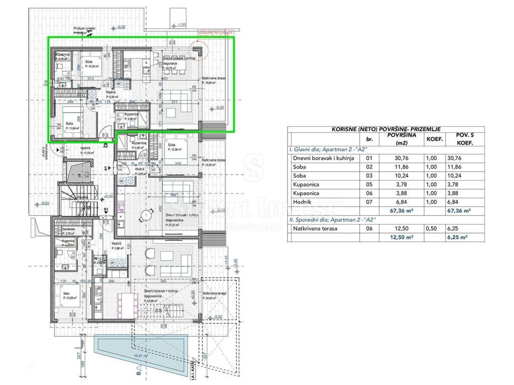 IČIĆI LUXURIOUS APARTMENT WITH TERRACE AND SEA VIEW IN NEW RESIDENTIAL COMPLEX! EXCLUSIVELY IN OUR AGENCY! For sale is an exclusive apartment with a spacious terrace and sea view in a superb new residential complex with garage and elevator in an extremely attractive location - just a few minutes' walk from the sea, beaches and ACI marina! This superb residential complex with a total of 8 apartments exudes contemporary design and elegance, and is made of the highest quality materials, which guarantees durability and quality. Located in an attractive and sought-after location just a few minutes' walk from the beaches and the marina, this complex offers you modern design, luxurious elegance and comfort, and with its contemporary style and the finest materials, it sets new standards for modern housing. APARTMENT A2 • Floor: ground floor • 2 bedrooms, 2 bathrooms • total area of ​​the apartment with secondary parts: 104.36 m2 • total net area of ​​the apartment with secondary parts (with coefficients): 80.86 m2 • internal area of ​​the apartment: 67.36 m2 • covered terrace: 12.5 m2 • garden: 23 m2 • 2 garage parking spaces • storage room: 1.5 m2 You have at your disposal an entrance corridor, pantry, spacious living room with kitchen and dining area, master bedroom with en-suite bathroom, one more bedroom and bathroom. The living room has access to a spacious terrace with a beautiful sea view - a real oasis for enjoying the outdoors! The apartment also has a separate storage room and 2 parking spaces in the garage, which provides you with additional comfort and convenience. EQUIPMENT The apartments are designed with special attention to quality and are superbly equipped: • heating/cooling with a heat pump (fan coil system or parapet units) • ALU exterior joinery with blinds • top-quality parquet and 1st class Italian ceramics • top-quality interior doors (2.40 m high) • GESSI faucets • anti-burglary entrance doors • elevator from the garage Top quality, luxurious equipment and an excellent microlocation, just a few minutes walk from the beaches and marina and a few minutes drive from the center of Opatija, make this property the perfect choice for those looking for a luxurious apartment by the sea for family life or vacation, as well as a prestigious property for investment in tourist rentals. PRICE The listed price refers to a completely finished apartment on a turnkey basis, without furniture. The price includes VAT, the buyer is exempt from paying real estate tax. In the case of purchase from a company registered in Croatia, a full VAT refund is possible after the purchase. For more information and a viewing appointment, call: +385/99/320-0008 ID CODE: 16172 Agencija Opatija Ovlašteni posrednik Mob: +385/99/320-0008 E-mail: office@smart-invest.hr www.smart-invest.hr