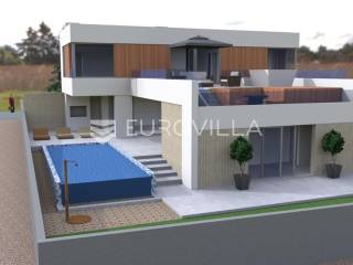 U mirnom i prestižnom dijelu Kožina, nedaleko od Zadra, smjestila se ova impresivna dizajnerska vila koja se prostire na zemljištu površine 639 m². Izgrađena je po najvišim standardima gradnje, spajajući tradicionalne mediteranske elemente i suvremeni luksuz u savršenu cjelinu.Vila se prostire na dvije etaže povezane unutarnjim i vanjskim stubištem, a svaki detalj pažljivo je osmišljen kako bi pružio maksimalnu udobnost, privatnost i eleganciju.Na prvoj etaži nalazi se prostrani ulazni prostor, spavaća soba s vlastitom kupaonicom, gostinjski toalet, te dnevni boravak, kuhinja i blagovaonica otvorenog koncepta s direktnim izlazom na terasu. Poseban kutak zauzima zona za opuštanje i zabavu s fitness prostorom, saunom i vanjskim bazenom, dok je terasa s kaminom idealna za druženja, roštiljanje ili opuštanje uz topli plamen tijekom večernjih sati.Na drugoj etaži smještene su tri prostrane spavaće sobe, svaka s vlastitom kupaonicom i staklenim pogledom na more. Sobe imaju izlaz na prekrasnu terasu s hidromasažnom kadom, firepitom, ležaljkama i vanjskim dnevnim boravkom - savršeno mjesto za uživanje u zalascima sunca i mediteranskoj atmosferi.Ova ekskluzivna vila predstavlja savršen spoj modernog dizajna, luksuza i udobnosti, te nudi idealno okruženje za život ili odmor u blizini jednog od najljepših dijelova zadarske obale.Za dodatne informacije stojimo vam na raspolaganju.