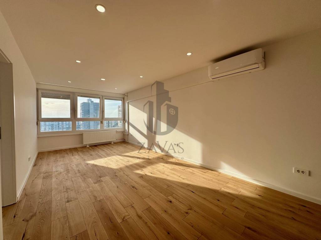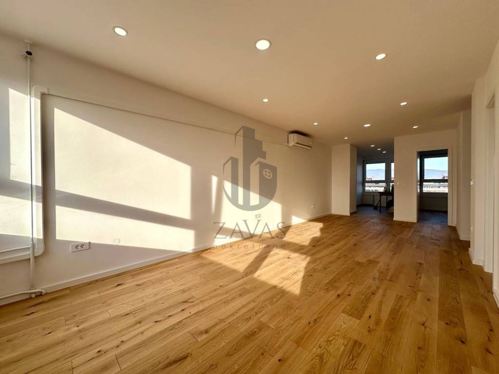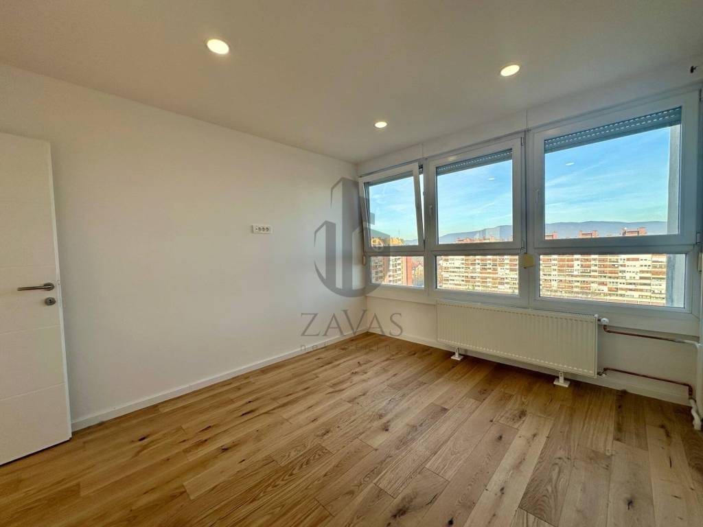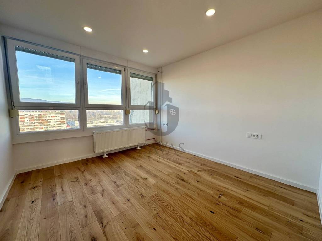 U potpunosti je renoviran, pri čemu su ugrađeni nova PVC stolarija, nova kupaonica i sanitarije, obnovljene instalacije struje i vode, postavljeni novi parketi u cijelom stanu te su zidovi pogletani i svježe okrečeni.