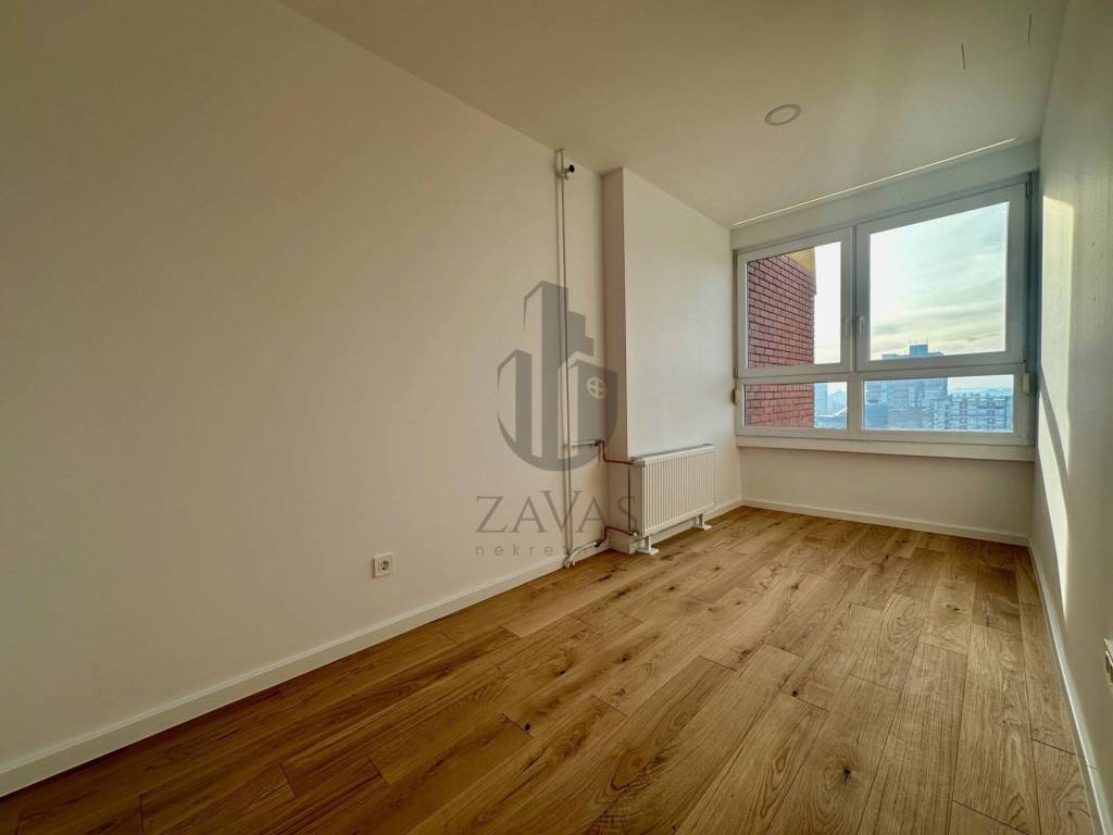 Stan je orijentiran tako da s jedne strane gleda na miran park i zelenilo, dok s druge strane pruža pogled prema Novom Zagrebu.