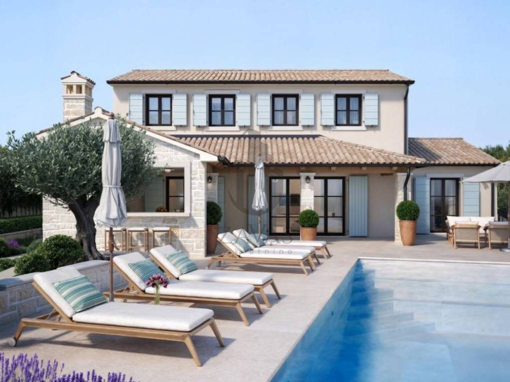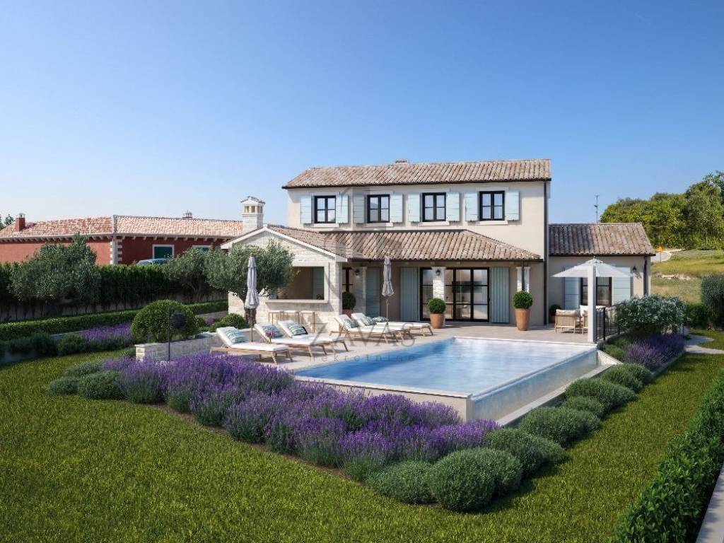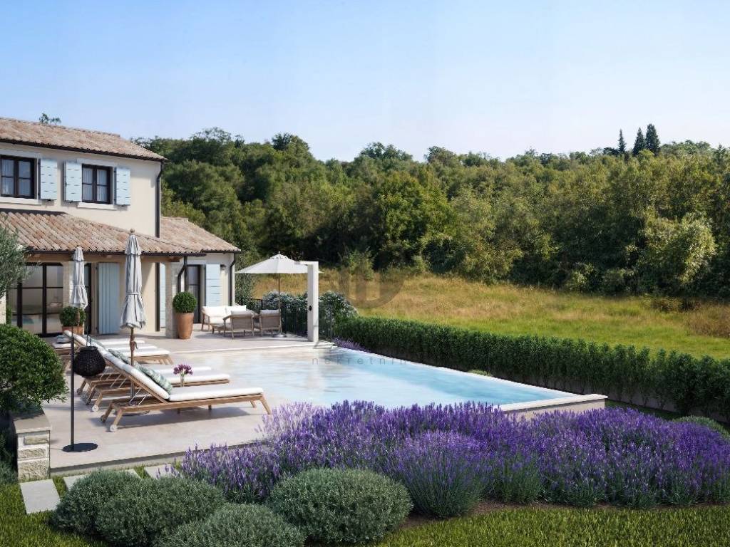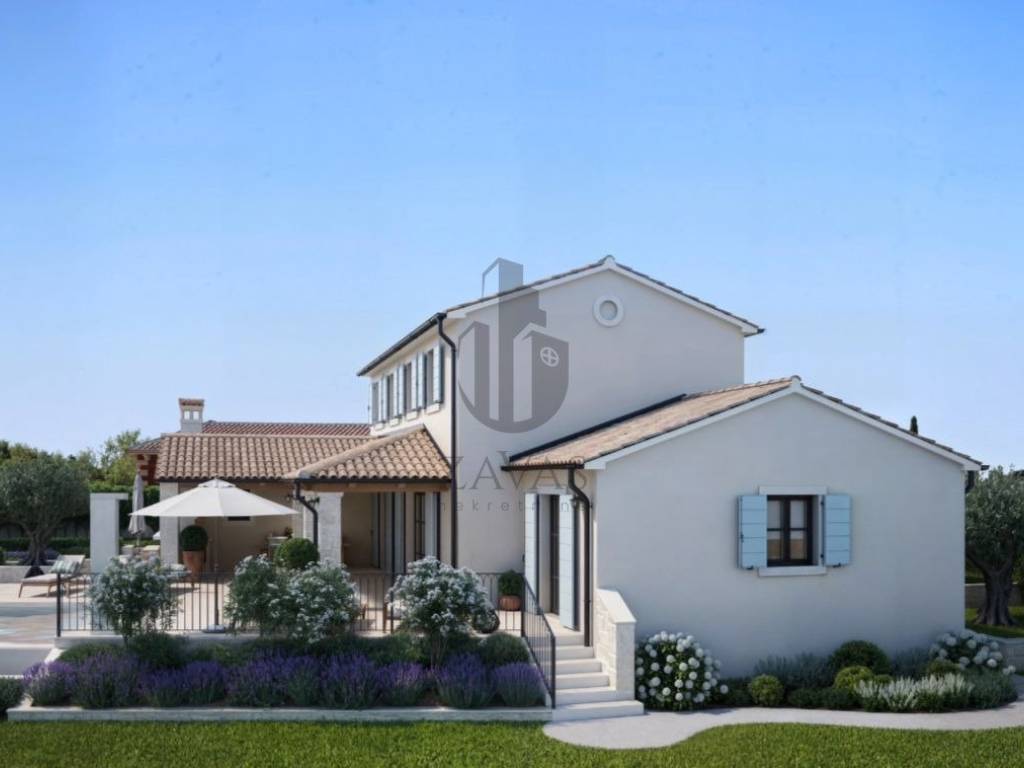 Na prodaju građevinsko zemljište 964 m u Svetom Lovreču, Istra, s dozvolom i projektom za vilu 169 m s bazenom.