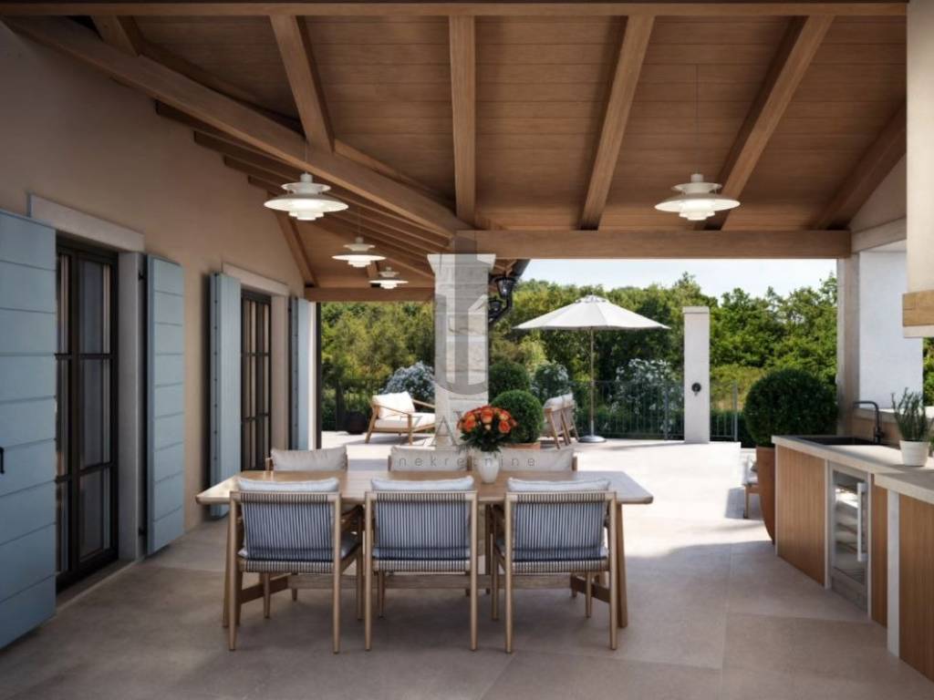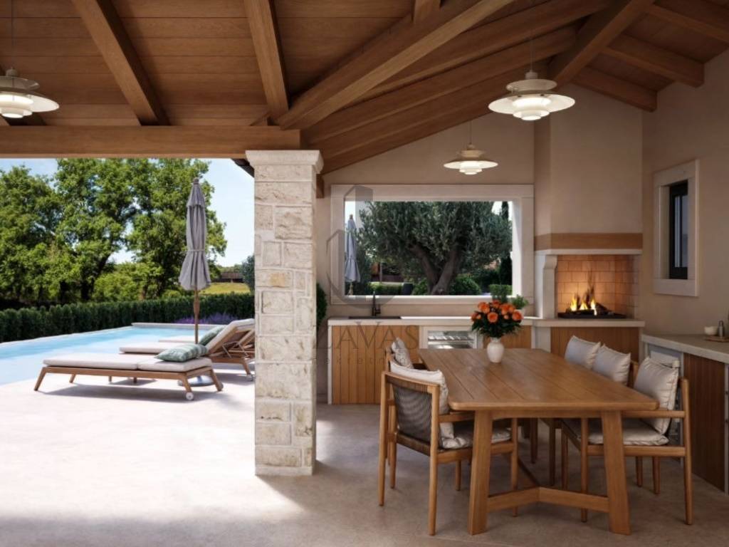 Predviđene 3 spavaće sobe, 3 kupaonice, dnevni boravak s kuhinjom, terasa, ljetna kuhinja, spremište, tehnička soba i parkirna mjesta.