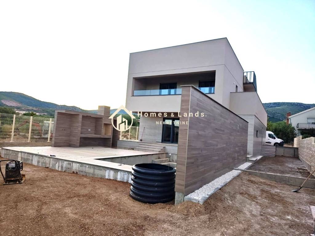 U srcu Dalmacije, u mirnoj i atraktivnoj okolici grada Trogira, smještena je ova moderna luksuzna vila, idealna za obiteljski život, turističku investiciju ili siguran povratak u domovinu.