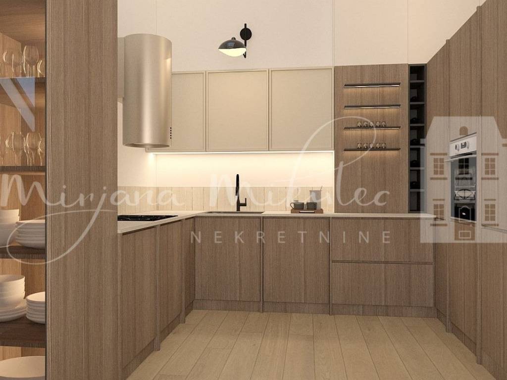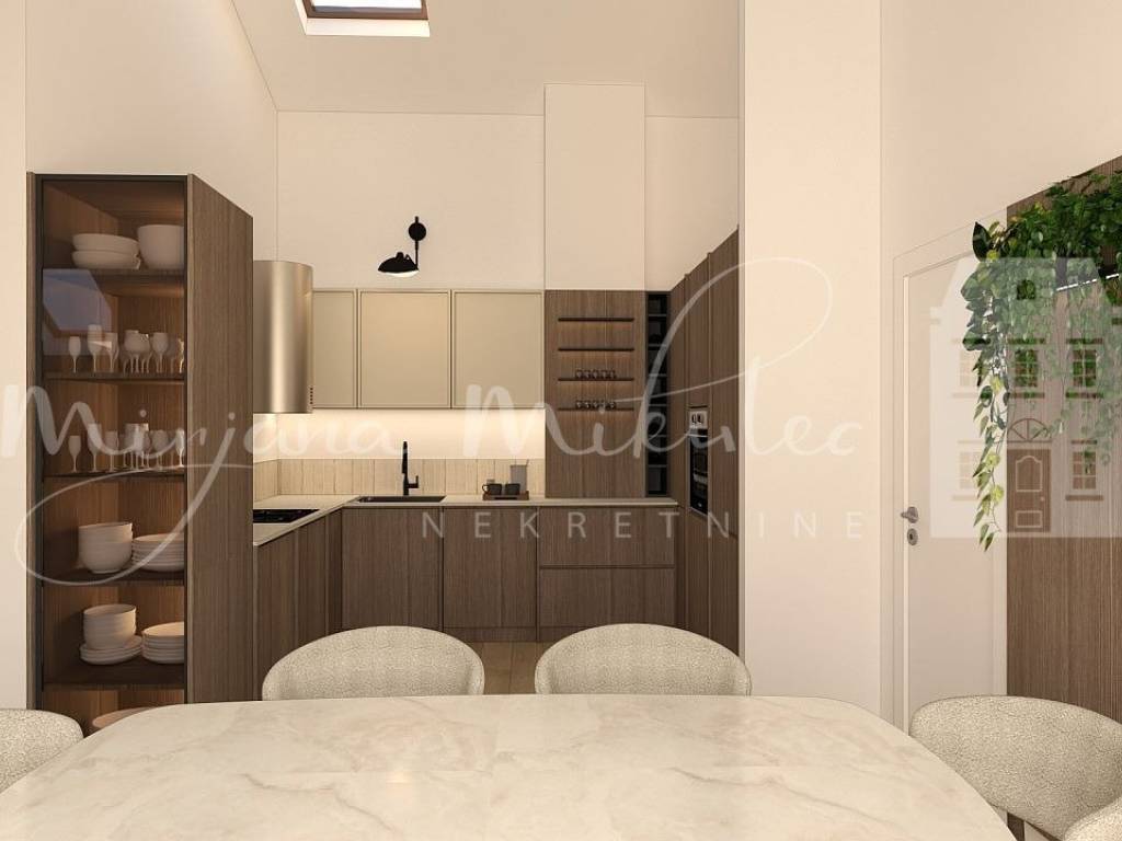 Dodatni prostor osigurava kuhinja površine 7,21 m, gdje je 6,06 m u visokom dijelu, a 1,15 m u nižem.