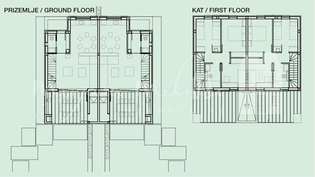 Otok Silba poznat još pod nazivom " vrata Dalmacije", nalazi se zapadno od Zadra. Veličina otoka je svega 15 kvadratnih kilometara i to je otok očuvane prirode, čistog mora na kojemu su zabranjeni automobili.Prodaje se novogradnja, što je rijetkost na tom otoku, na parceli od 600 m2.Kuća koja je zamišljena kao dvojni objekt, te ju čine 2 odvojena stana. Mogućnost kupnje samo jednog stana ( pola kuće), cijena jednog stana: 320.000 .Svaki stan je veličine 92 m2 netto površine ( cca 97 m2 brutto površine). Svakom stanu pripada i okućnica od 230 m2.Prizemlje: dnevni boravak ( 21.50 m2), kuhinja i blagovaona ( 11,25 m2), ulaz ( 3,15 m2), wc ( 1,95 m2), spremište ( 2, 95 m2), terasa ( 15,65 m2) i dvorište cca 225 m2.Kat: hodnik ( 3,05 m2), stubište ( 3,45 m2), soba 1 ( 9, 75 m2), soba 2 ( 10, 75 m2), soba 3 ( 8, 15 m2) i kupaonica ( 4,45 m2).Svakom stanu pripada spremnik za vodu od 40 kubika zapremnine.Lokacija kuće je odlična, udaljena od plaže svega 240 m i od centra mjesta 400m.Agencijska provizija iznosi 3 % + PDV.The island of Silba, also known as the "gate of Dalmatia", is located west of Zadar. The size of the island is only 15 square kilometers and it is an island of preserved nature, clean sea where cars are prohibited.New construction for sale, which is a rarity on that island, on a plot of 600 m2.The house, which was conceived as a double building, consists of 2 separate apartments.Each apartment has a size of 92 m2 net area (approx. 97 m2 gross area). Each apartment has a garden of 230 m2.Ground floor: living room (21.50 m2), kitchen and dining room (11.25 m2), entrance (3.15 m2), toilet (1.95 m2), storage room (2.95 m2), terrace (15.65 m2) and yard approx. 225 m2.Floor: hallway (3.05 m2), staircase (3.45 m2), room 1 (9.75 m2), room 2 (10.75 m2), room 3 (8.15 m2) and bathroom (4.45 m2).Each apartment has a 40 cubic meter water tank.The location of the house is excellent, only 240 m2 from the beach and 400 m from the town center.Agency commission is 3% + VAT.