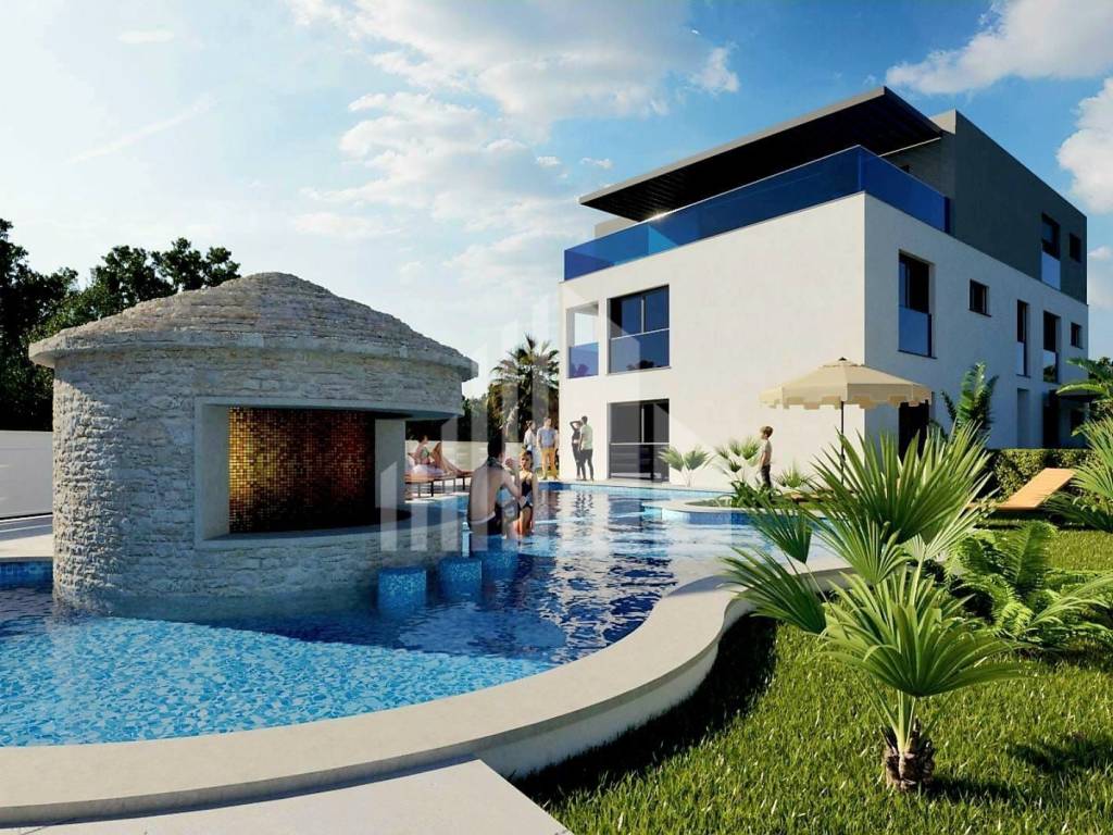 U ponudi imamo građevinsko zemljište na atraktivnoj lokaciji udaljenoj samo 700m od centra grada Poreča i mora. Na predmetnom građevinskom zemljištu ukupne površine 894 m2 ishođena je građevinska dozvola za izgradnju zgrade stambene namjene s ukupno pet stambenih jedinica. Ukupna netto površina zgrade za koju je izdan akt iznosi 750 m2 (uključujući i terase). Svaka stambena jedinica sadrži garažno mjesto i ostavu te zajednički bazen. U zgradi je predviđen i lift. Sva potrebna infrastruktura nalazi se na pristupnom putu.