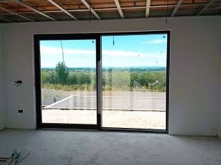The house is located as a detached house on a plot of 1170 m2 in total, and it consists of a ground floor and a 1st floor. The ground floor consists of an entrance porch, anteroom, laundry room, a large living room with a gallery, a kitchen and a dining room with access to two covered terraces, a technical room, a toilet, a bedroom with its own bathroom and a wardrobe, then the staircase leads to the 1st floor. which has three spacious bedrooms with private bathrooms and exits to terraces, and a sauna.The terrace offers a beautiful view of the sea and nature (Alps) and an infinity pool with an overflow. An auxiliary building is located next to the pool.Aluminum openings with three-layer glass (blinds and blinds) on the facades are of larger dimensions in order to open the interior to the environment and natural lighting of the house. The floors are covered with three-layer oak parquet, and top quality Italian ceramics in the bathrooms and technical room. Underfloor heating will be installed. The house will be equipped with an alarm system and video surveillance. A private and arranged parking space is provided on the plot.Due to its excellent location and superb equipment, this property represents an excellent opportunity for investment for tourist purposes, as well as a pleasant family life.