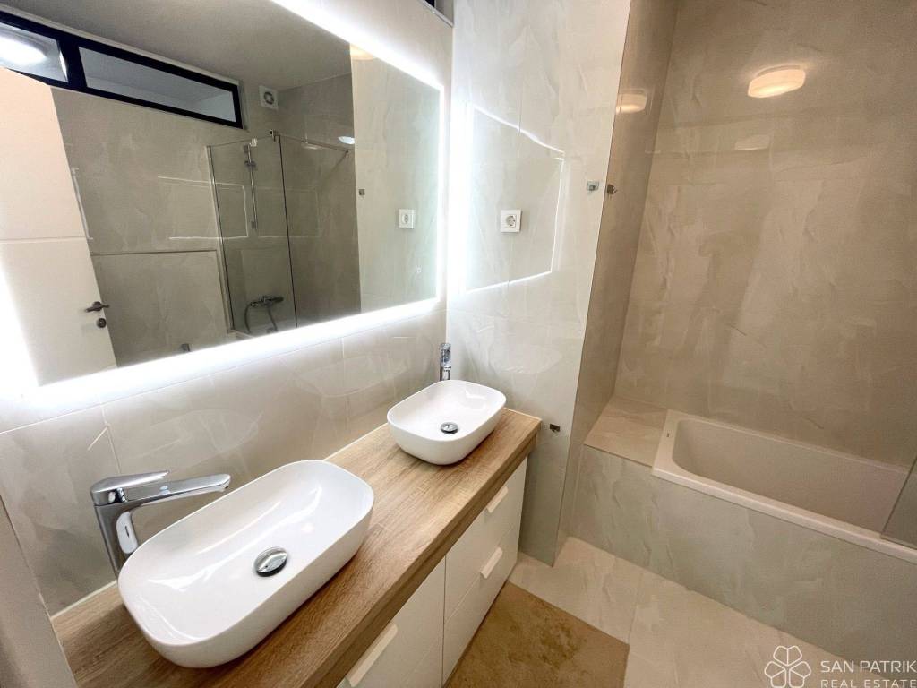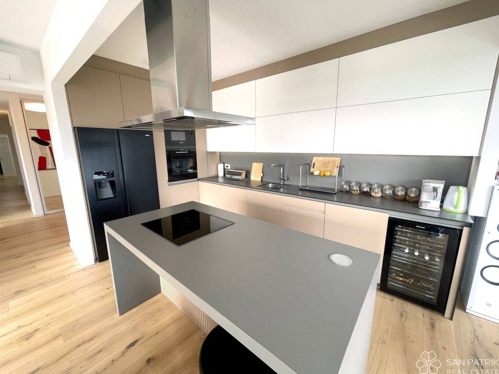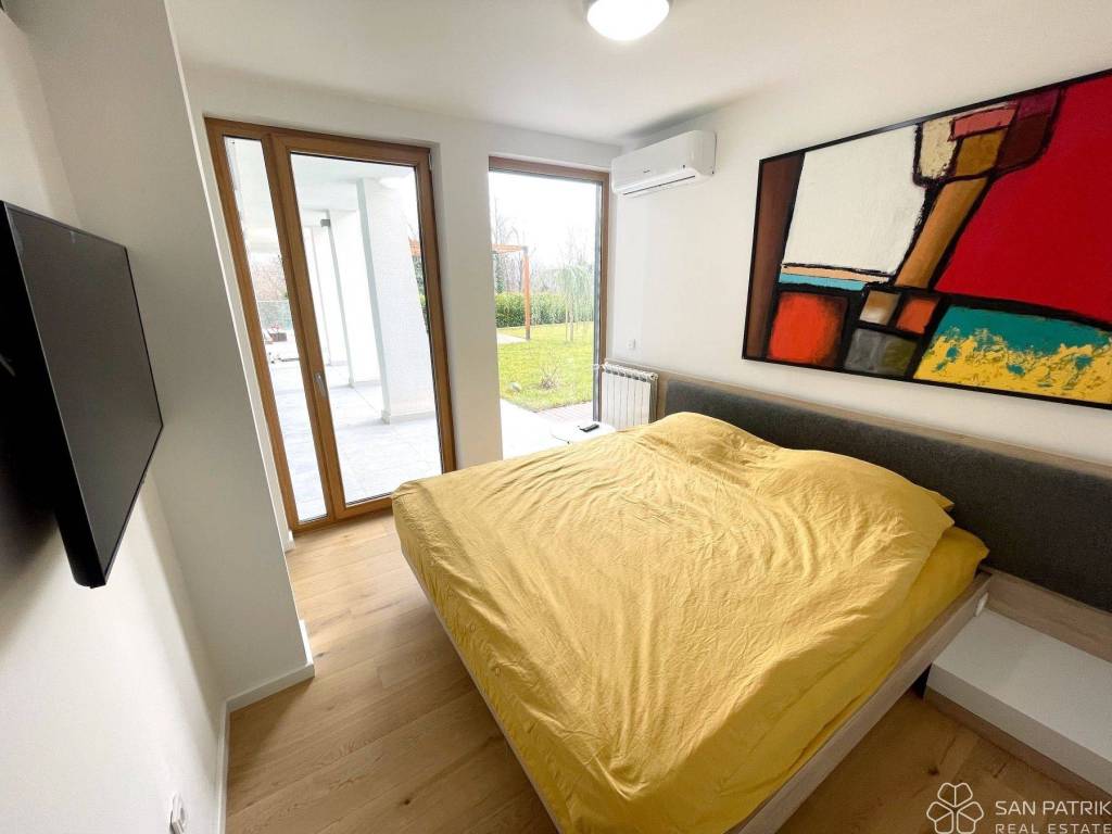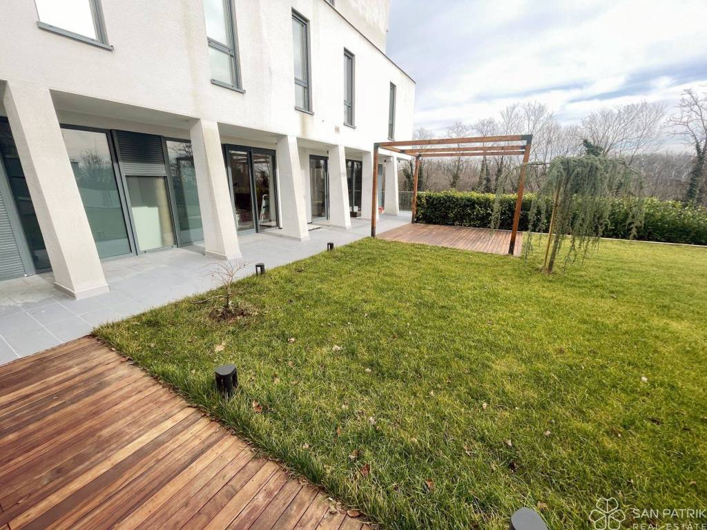 The apartment is located on the ground floor of an exclusive residential building that has only four units, ensuring intimacy and privacy. Energy-certified with an A rating, the building represents the pinnacle of modern living with an emphasis on energy efficiency and ecological sustainability.