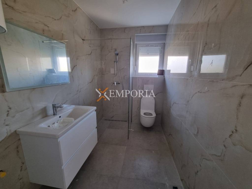 Excellent apartment for sale on the 1st floor of a building in Privlaka – Sabunike settlement. It is a modern new building. The apartment offers partial sea views.There are a total of 6 apartments in the building. The room layout consists of a hallway, 2 bedrooms, one of which has its own bathroom, bathroom, kitchen with dining room and living room and terrace. The net area of the described is 74,47 m2. In addition, the apartment has a parking space.The total net usable area of the apartment with all accessories is 75,97 m2.The building is under construction and the planned move-in date is Spring 2025.This property is 700 m from the sea and 2.3 km from the town center.