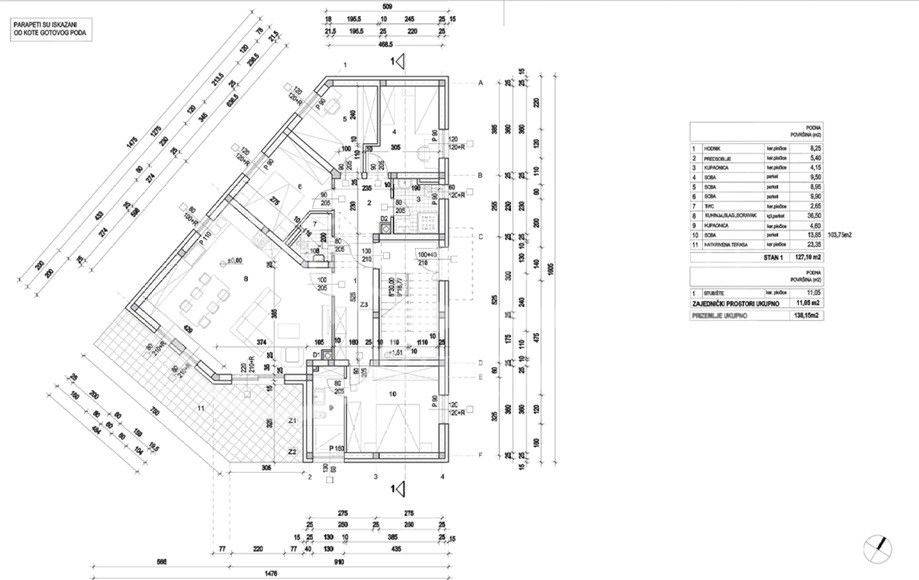 PRODAJA NOVOGRADNJA S DVA STANA U MANJOJ STAMBENOJ ZGRADI Prizemlje stan 127,10 m + natkrivena terasa 23,35 m Cijena: 3.000 EUR/m Kontakt: 091 603 6561