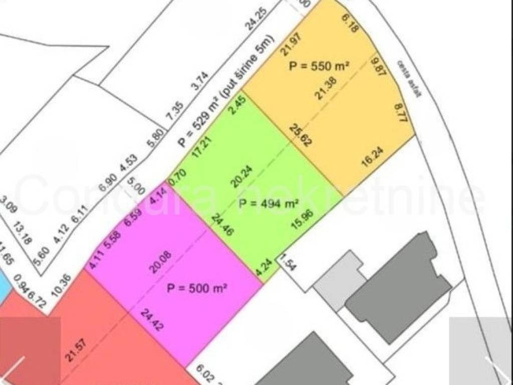 Prodaje se zemljište veličine 550m2 u izgrađenom dijelu građevinske zone naselja. Zemljište je pravokutnog oblika dimenzija ca 20m x 25m, te se uz njega nalazi pristupni put širine 5m koji vodi do javne ulice.