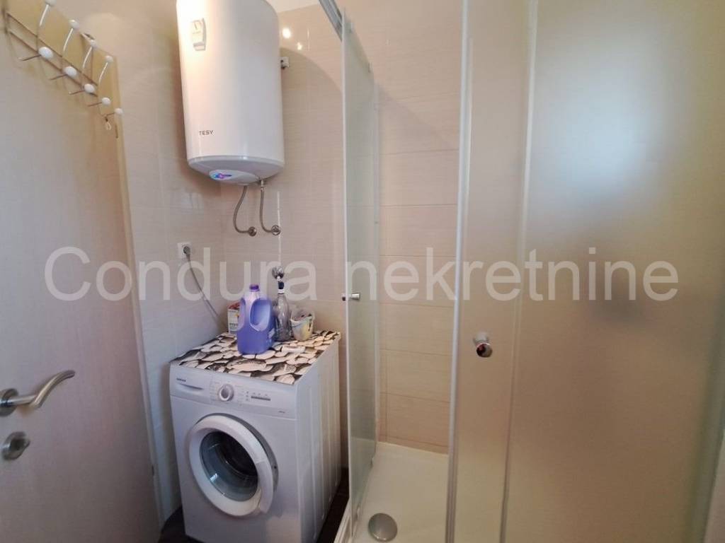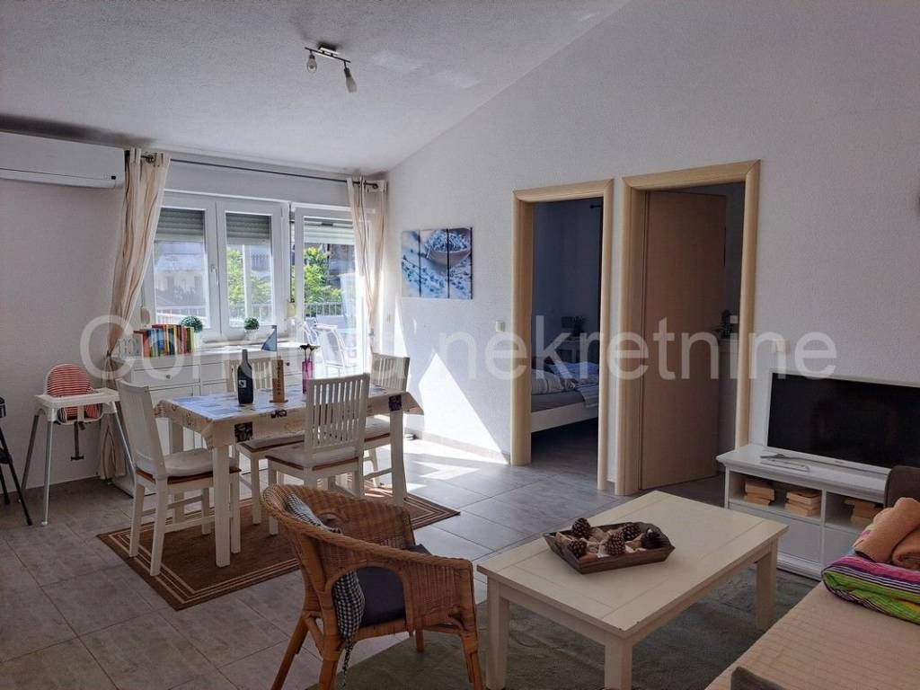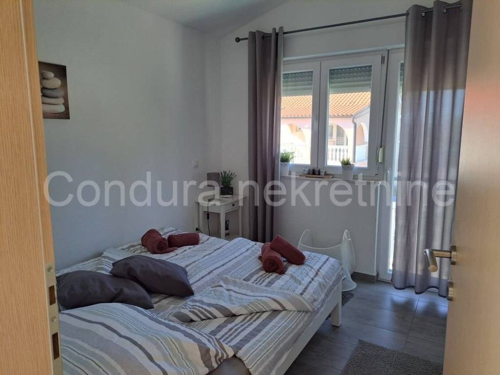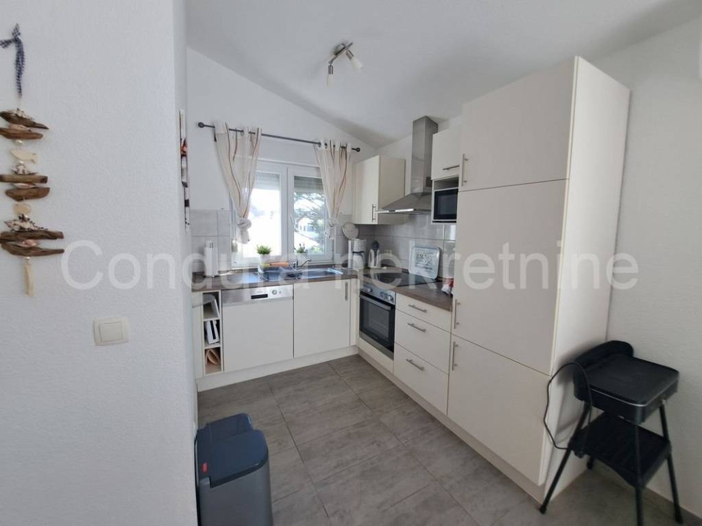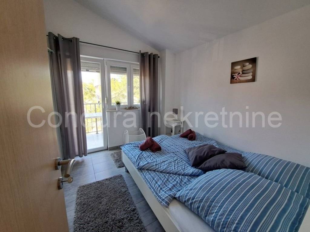 On the first floor there are two separate two-bedroom apartments (50 m2 and 46 m2) with a common entrance area, and each of them consists of: two bedrooms, a bathroom, a living room with a dining room and a kitchen. One apartment has access to a large balcony of 28.51 m2 covered with a pergola, while the other apartment has access to a balcony of 7.68 m2.