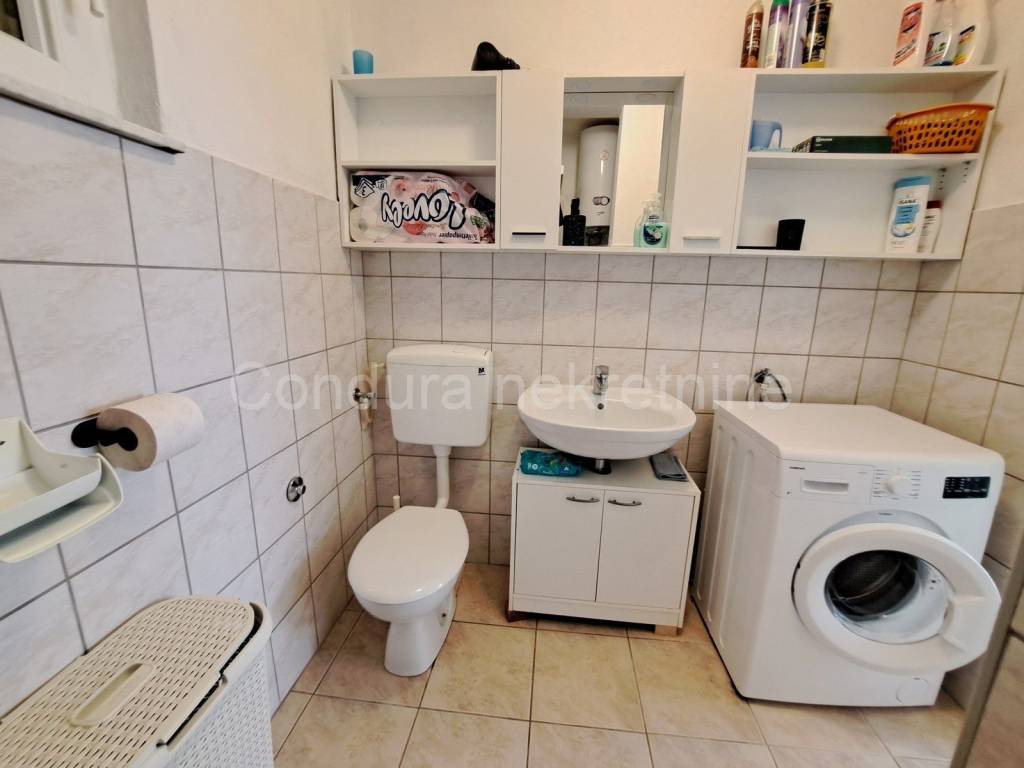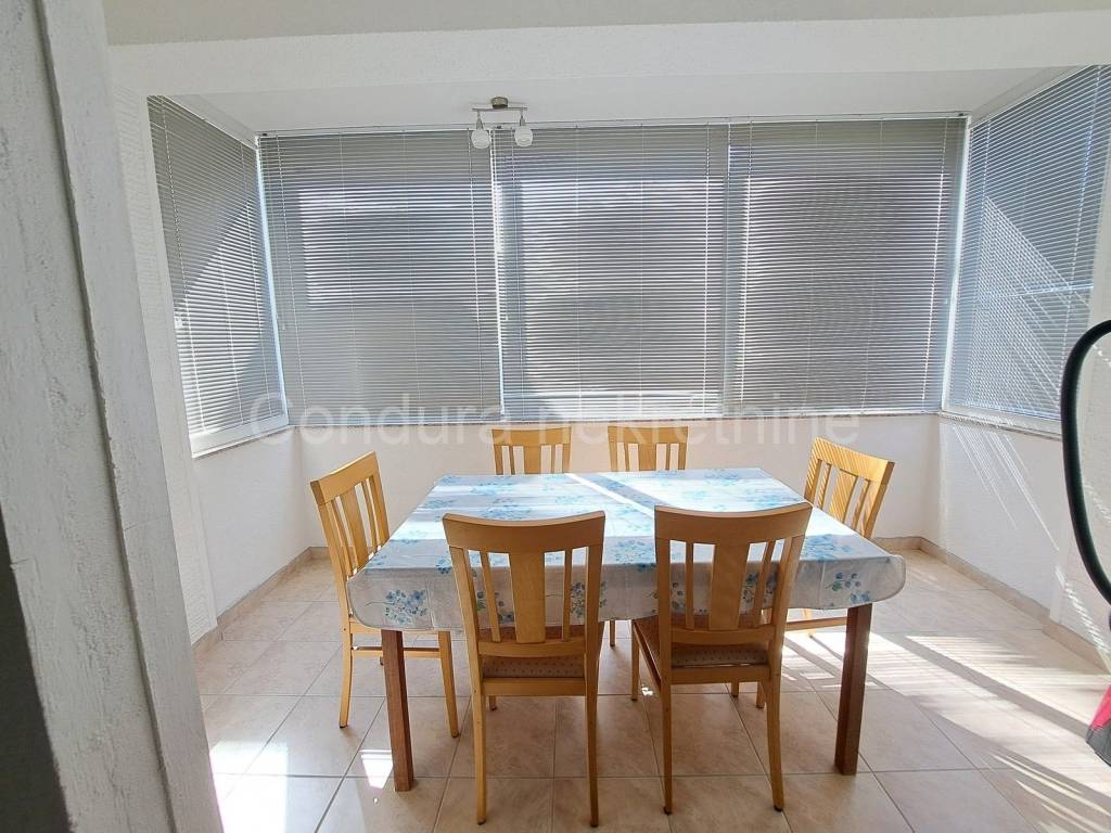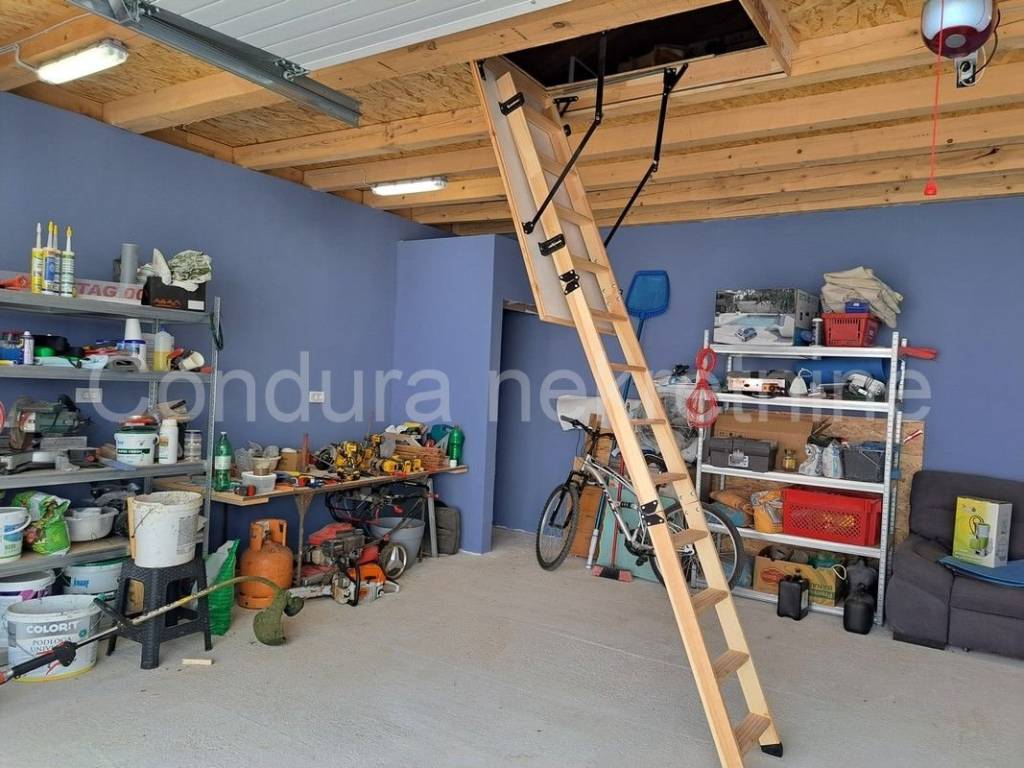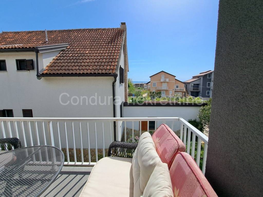 On the 1st floor, which is reached by an external staircase, there is also an apartment with the same arrangement of rooms as on the ground floor, and it also consists of a hallway, a living room with a kitchen and a dining room, two bedrooms and a bathroom. The living room leads to a balcony of 12.40 m2 with a view of the sea. In the ceiling of the corridor there are retractable stairs that lead to the attic.