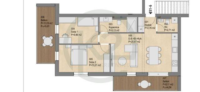 Prodaje se 3 - sobni stan u novogradnji S1-6 na 1. katu, korisne površine 78,58 m2, obračunske površine 69,01 m2, nekoliko minuta od Jankomira.
