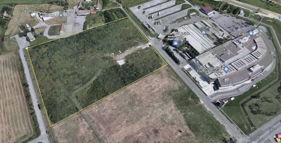 Prodaje se građevinsko zemljište u Osijeku, na odličnoj lokaciji za gospodarsku namjenu. Zemljište je ukupne površine 19.165 m2 te se nalazi odmah uz Avenue Mall osijek.