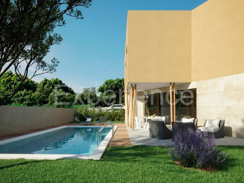 The house covers 117,80 m, spread over two floors, with a private pool and two parking spaces.