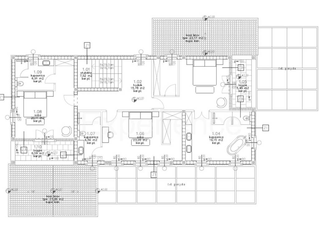 Special attention has been given to the landscaped garden, dominated by a swimming pool covering 44.87 m, surrounded by authentic stone walls that create an atmosphere of intimacy and charm of the past. The villa blends seamlessly into the environment, thanks to the combination of contemporary lines and traditional materials such as Istrian stone.