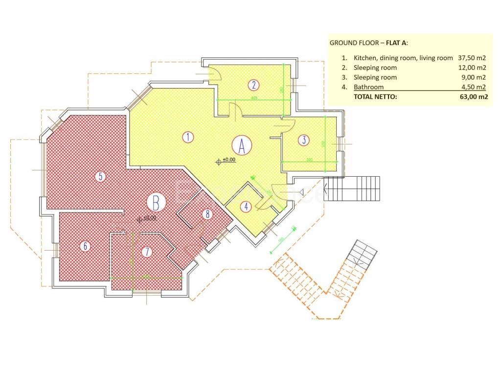 In addition to technical advantages, the advantages of this apartment are a great location near the beach, high-quality construction, an intimate building with only 8 residential units.