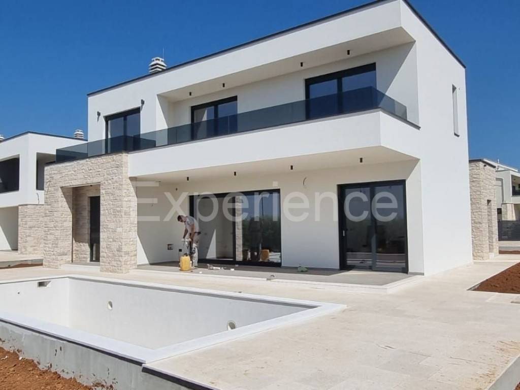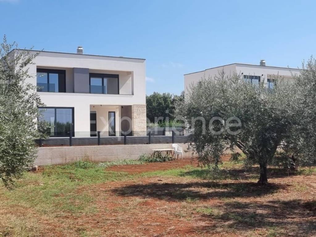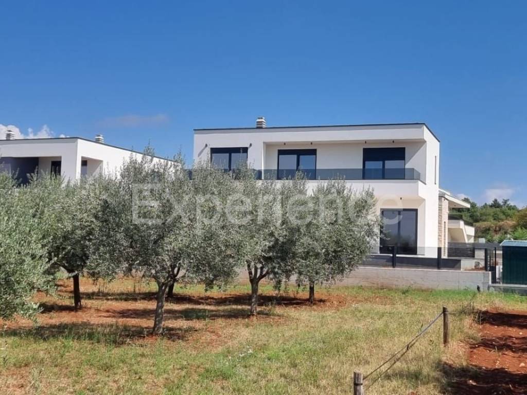 In the vicinity of Poreč, approx. 4 km from the sea and the center of the city, in a very quiet environment a luxurious newly built villa is for sale, with a total area of 216 m. The villa is characterized by an attractive modern design with wide glass openings with a view of the olive grove, and from the first floor of the villa there is an open view of the sea.