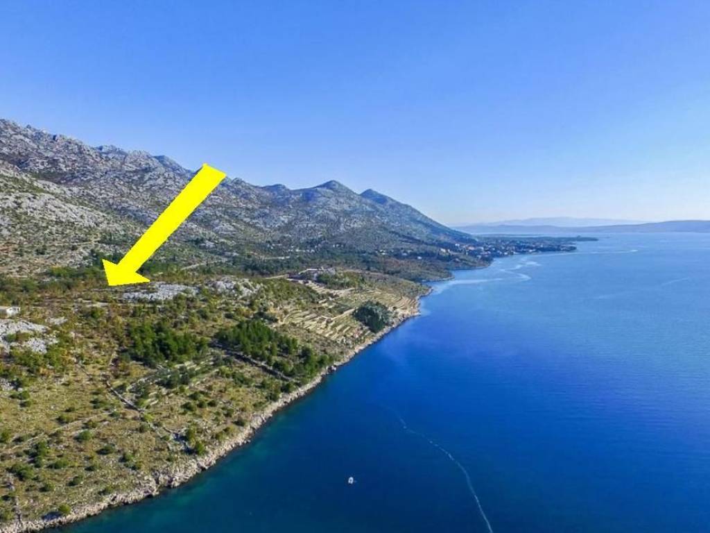 Attractive building plot of 3,915 sqm, located only 120 meters from the sea, on the slopes of Starigrad - Paklenica, under the main road, with a direct car access, water and electricity connections nearby, ideally for several villas with pool.