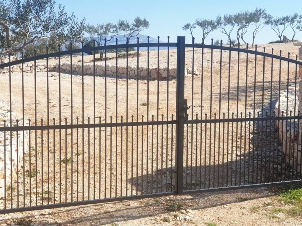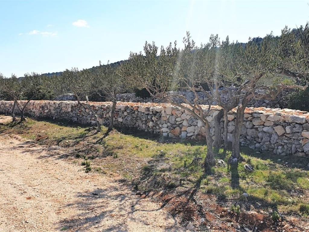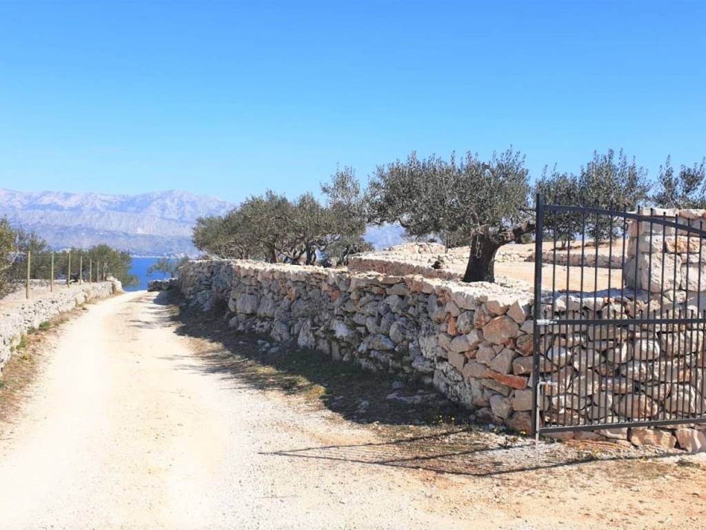 Prekrasan maslinik iznad Splitske, cca 700 m zračne udaljenosti od mora, površine 9.312 m2, potpuno uređen, obrađen i ograđen kamenim zidom, 70 stabala maslina, s velikim željeznim ulaznim vratima na posjed, prilaz autom, priključak vode, fantastičan pogled na more, manji stari kameni objekt.