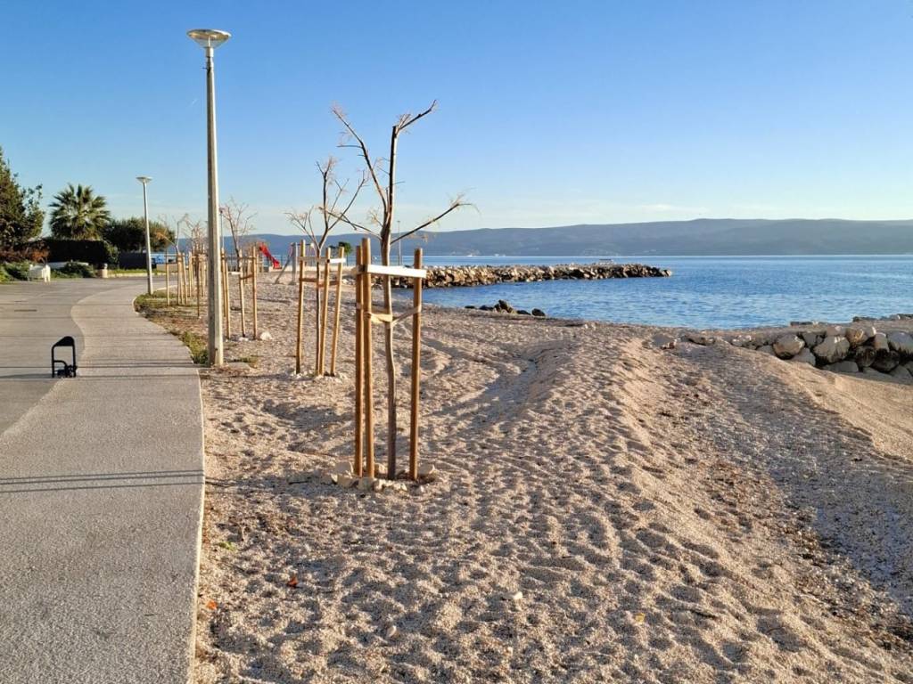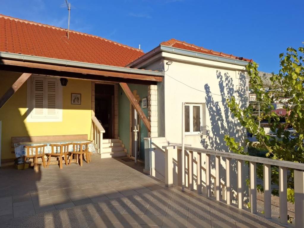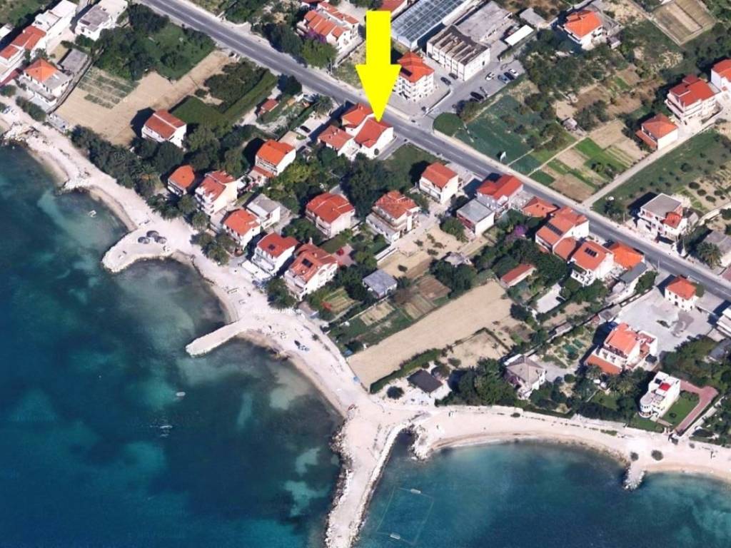 Dvojna kuća na atraktivnoj lokaciji Podstrana - Sv. Martin, smještena 3. red od mora i šljunčane plaže, ukupne površine cca 250 m2, koja se sastoji od četiri odvojena prostora za uređenja, trosobnog stana s velikom terasom na katu i neuređenog potkrovlja (sa ulazom iz stana), mogućnost nadogradnje, parking i vrt s vanjskim kaminom, djelomičan pogled na more.