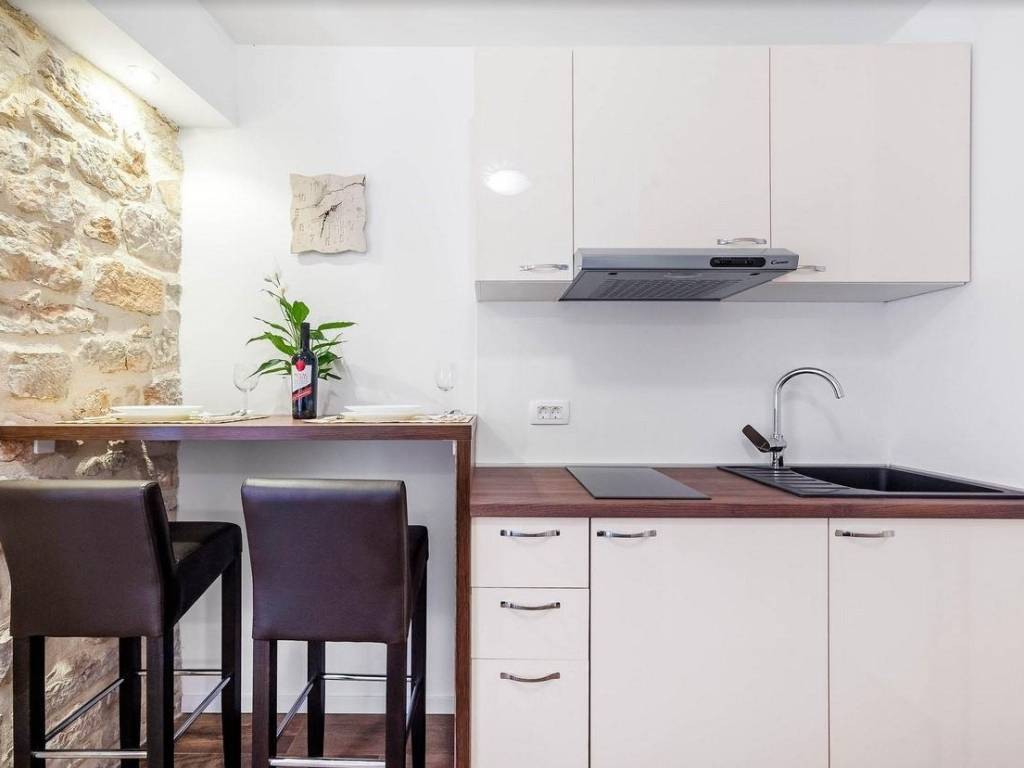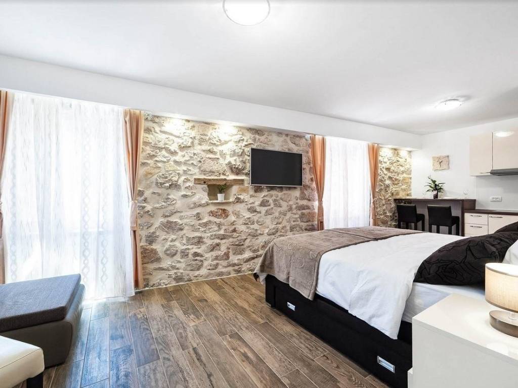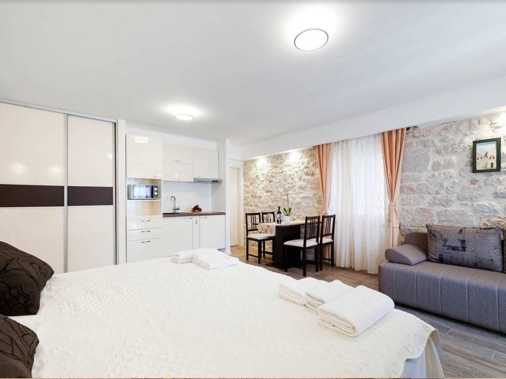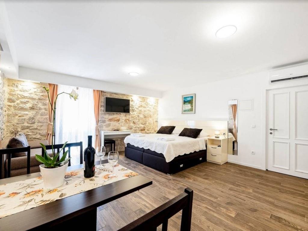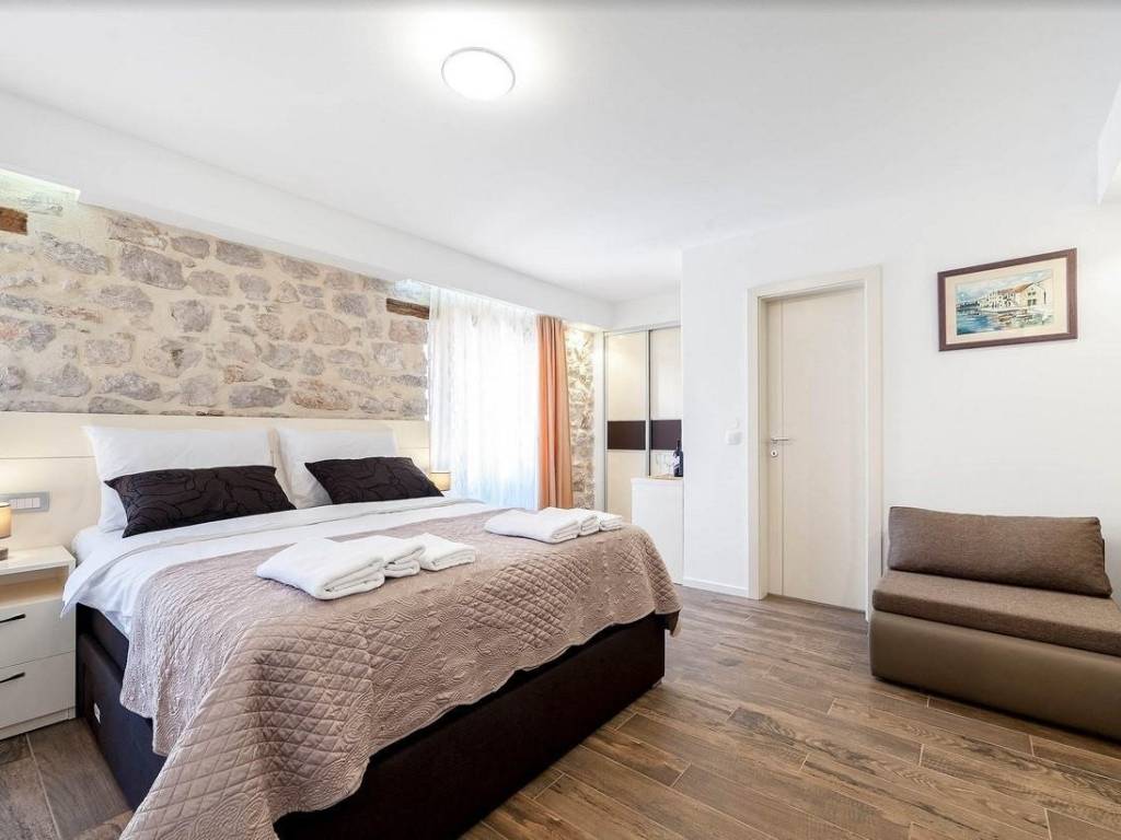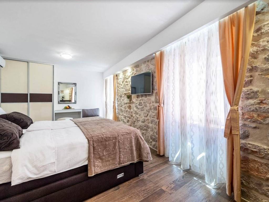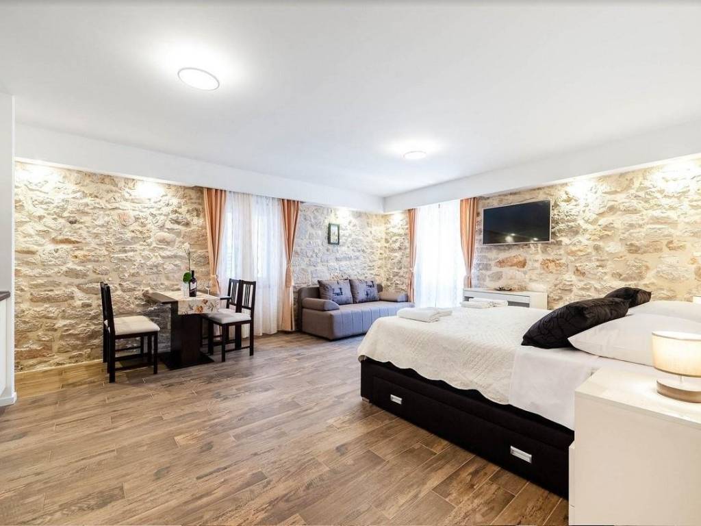 Luksuzno renoviran stan površine 114 m2, smješten na 3. katu starije kamene kuće u strogom centru Šibenika, na atraktivnoj lokaciji, koji se sastoji od 4 turističke jednice - 2 studio apartmana i 2 spavaće sobe s kupaonicama te predulaza, kompletno namješteno i opremljeno.